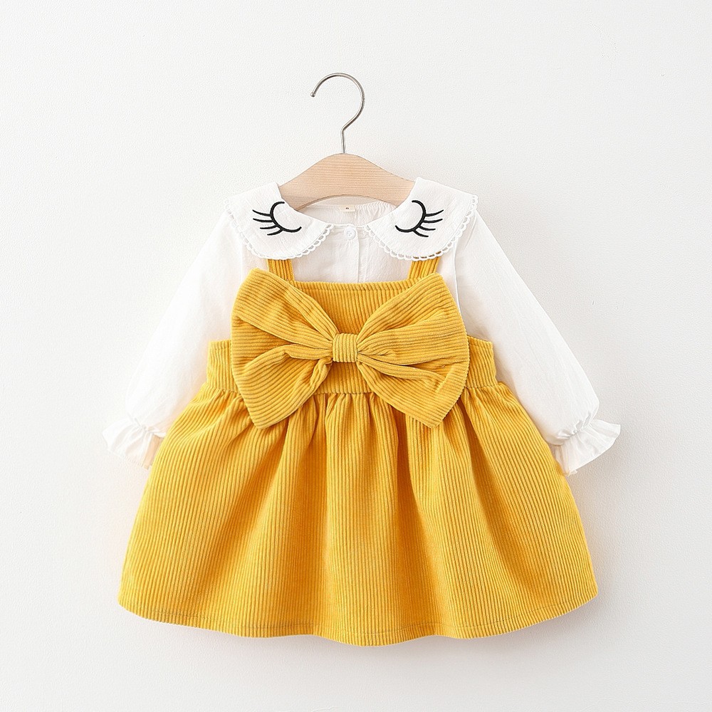 423 아동복 도매 봄 가을 여자 셔츠 + 가슴 큰 나비 스트랩 원피스 2 세트 위탁스토어 가기