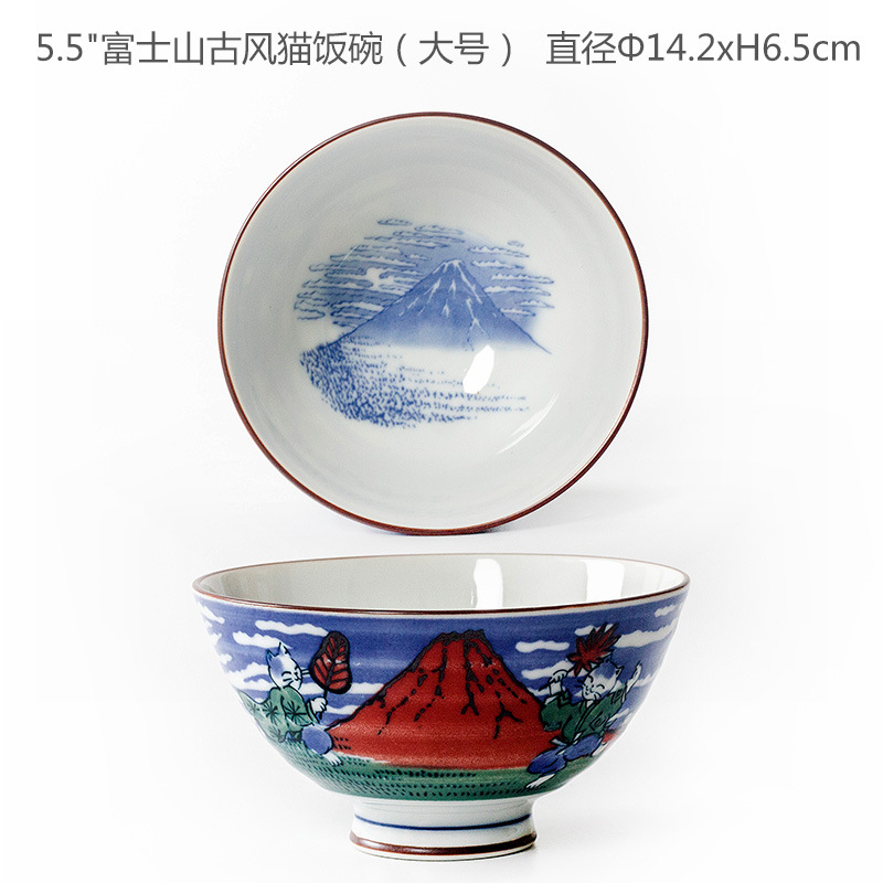 • 후지산 골동품 고양이 밥 그릇 (대형)