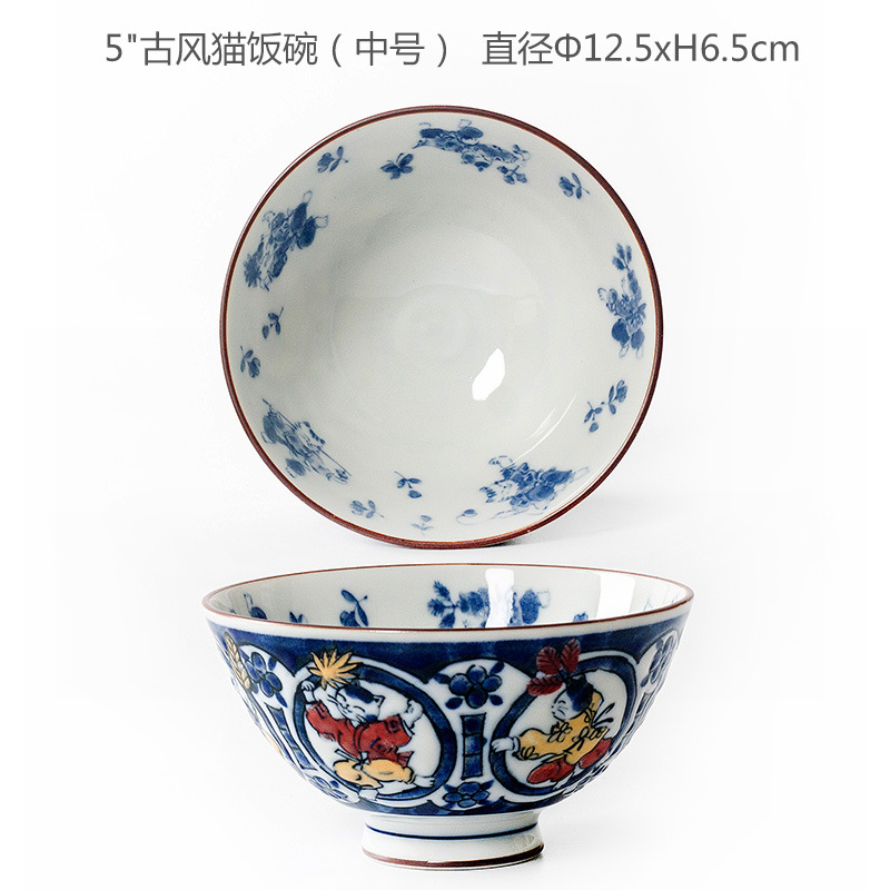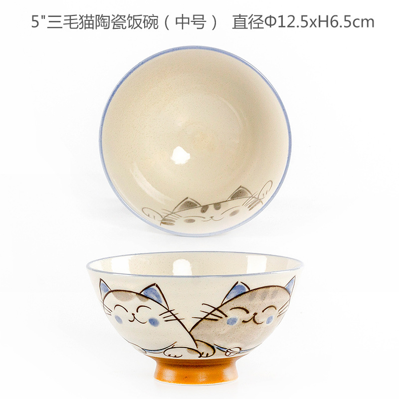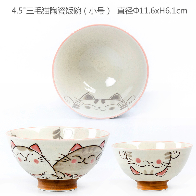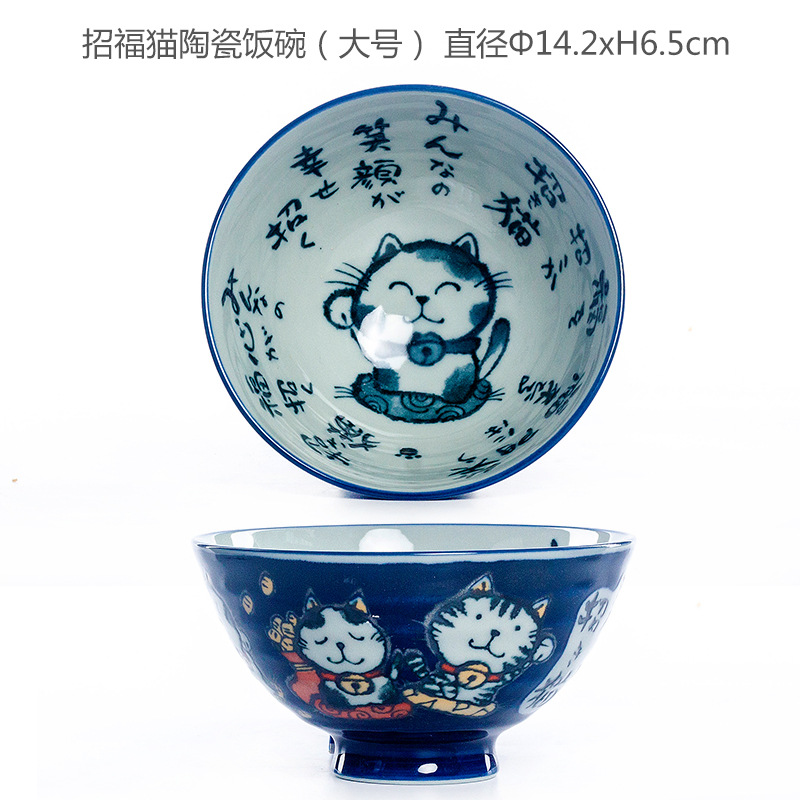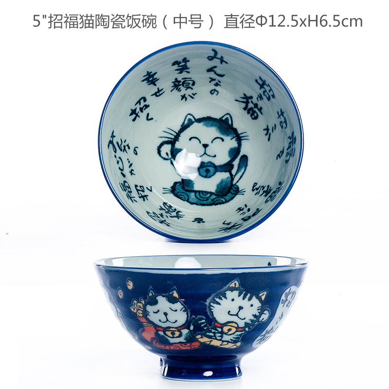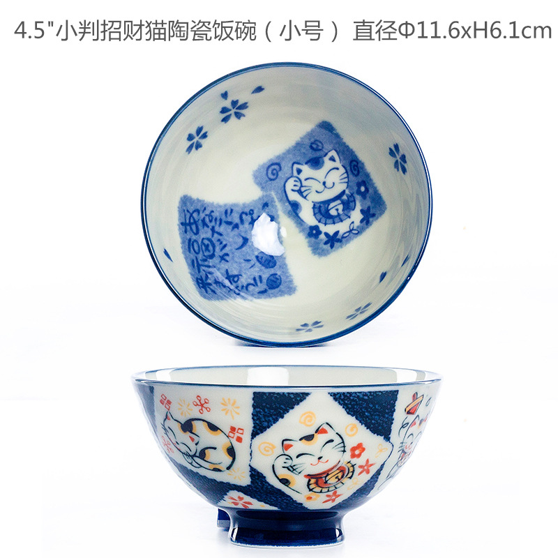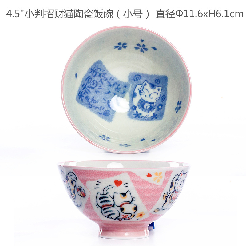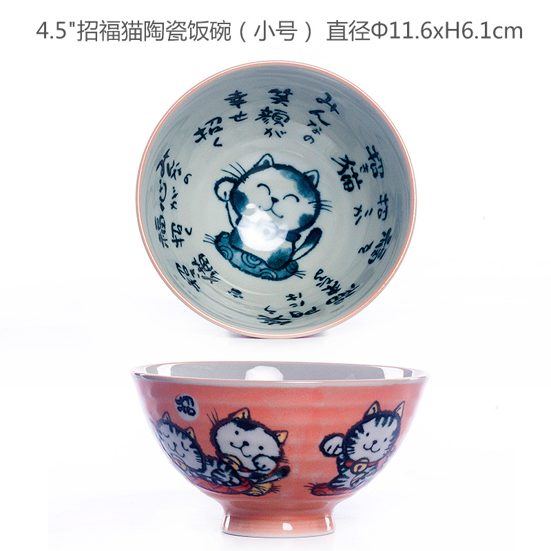 • 작은 문장 행운 고양이 도자기 밥 사발 (중간)