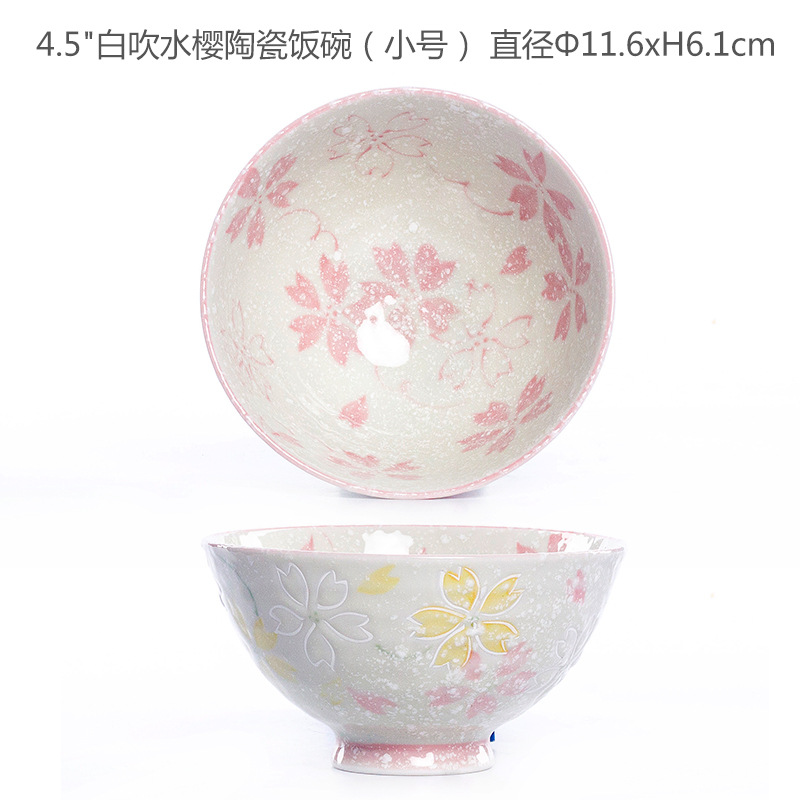 • 화이트 부는 물 사쿠라 도자기 밥그릇 (스몰 사이즈)