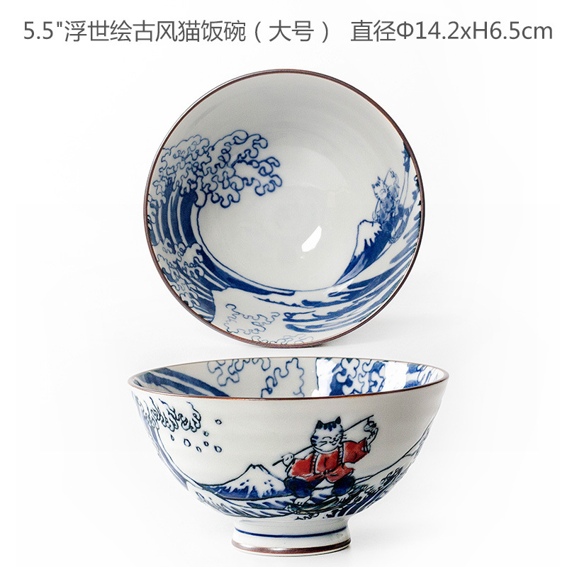 • Ukiyo-e 골동품 고양이 밥 그릇 (대형)