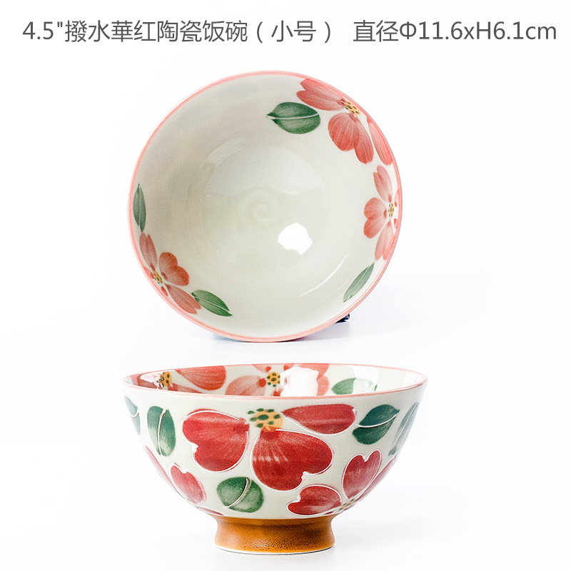 • 물 꽃 레드 세라믹 밥 그릇 (스몰 사이즈) 다이얼링