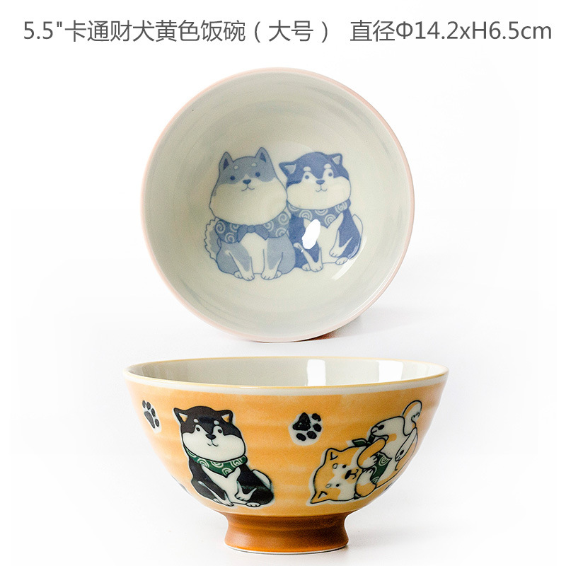 • 만화 돈 개 노란 밥 그릇 (큰)