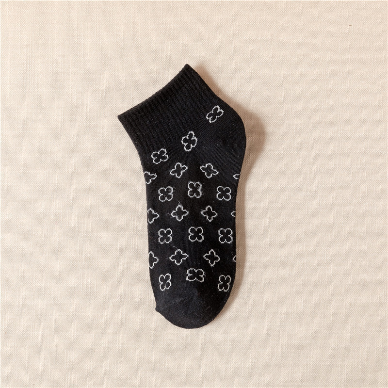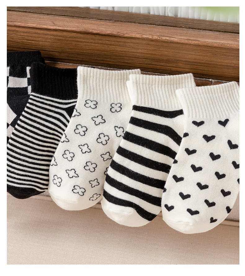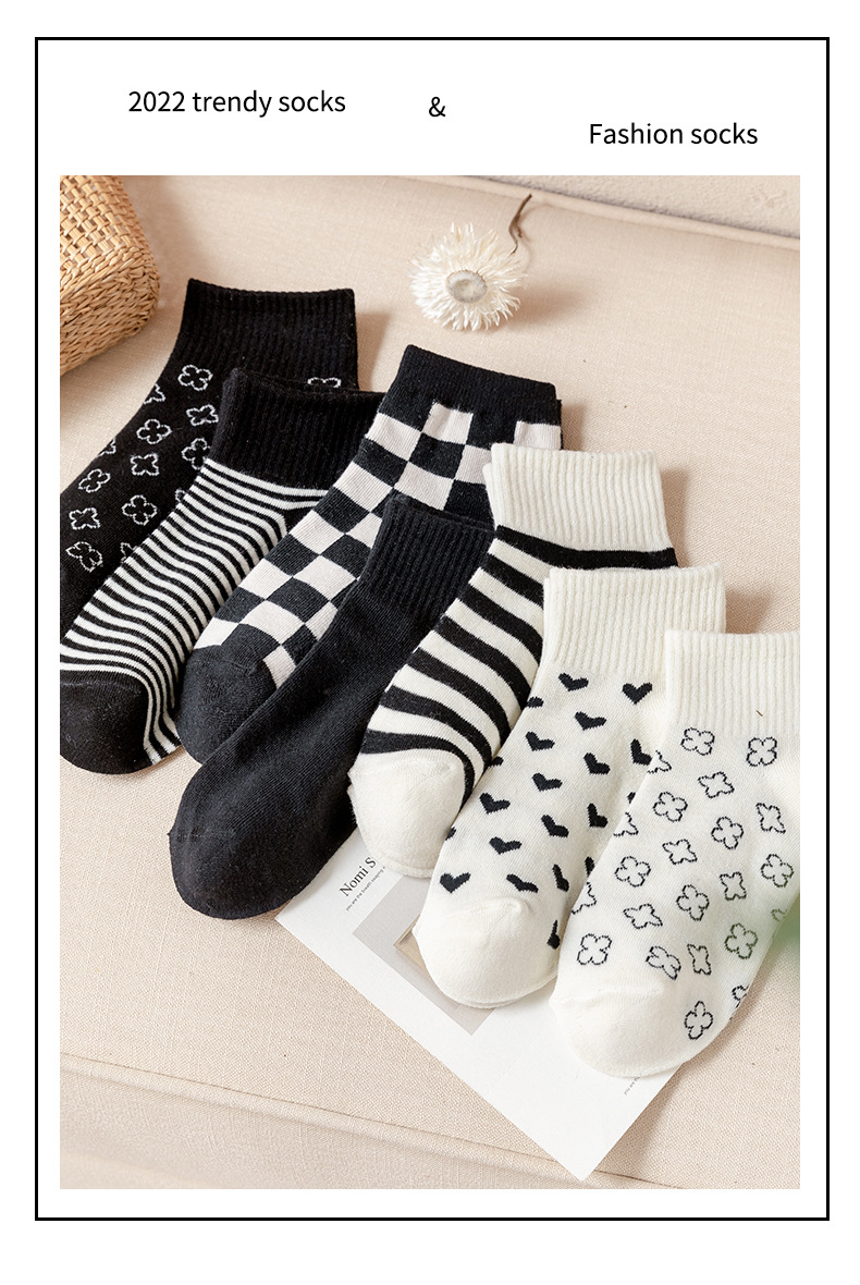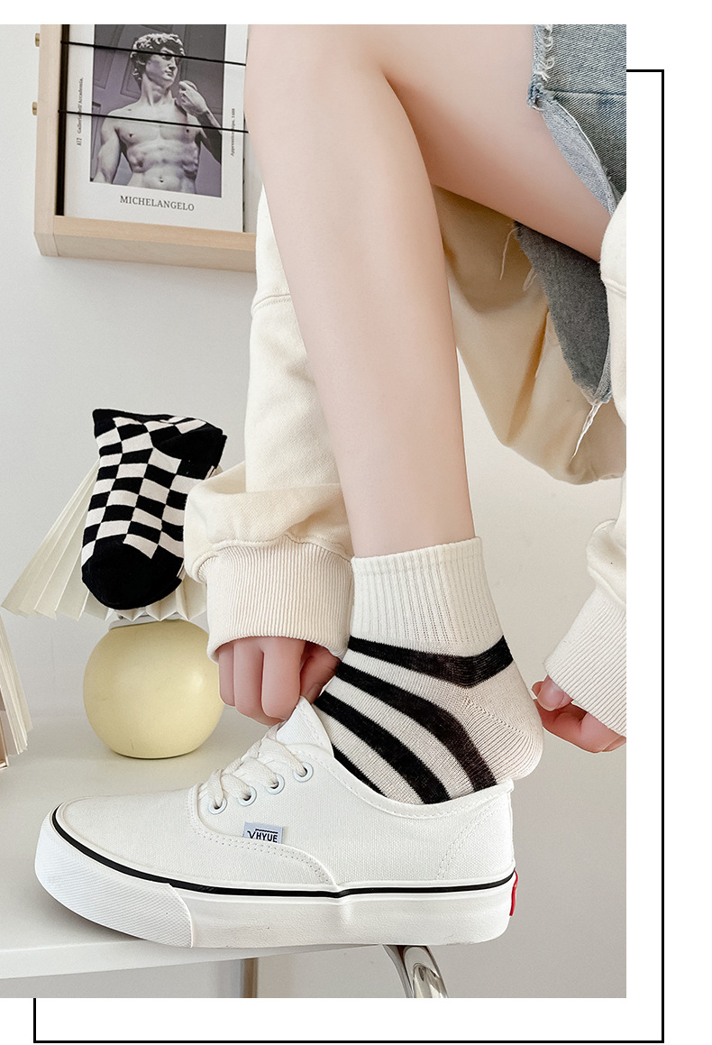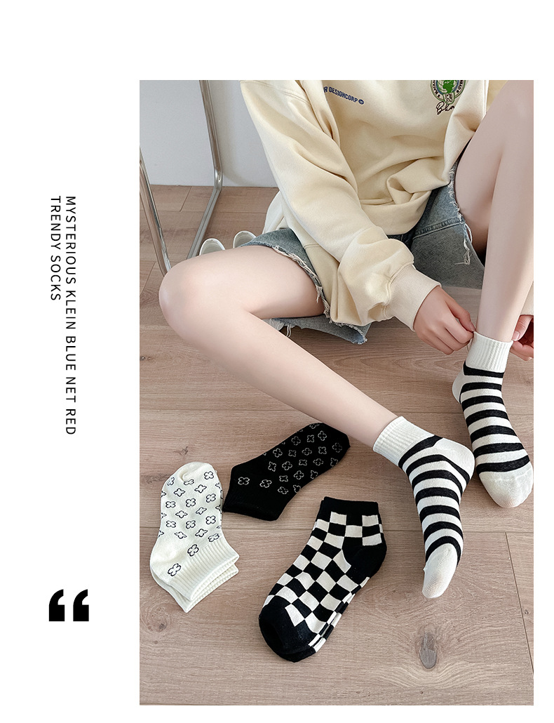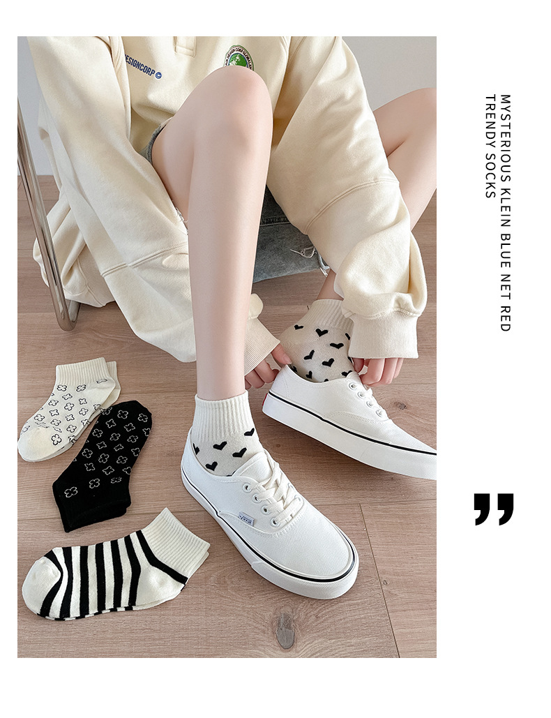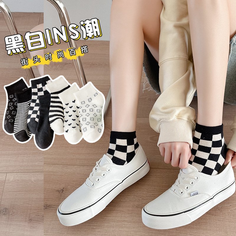 보트 양말 여성용 2022 봄 여름 새 양말 유행 일본 흑백 줄무늬 격자 무늬 사랑 로우 탑 여성 양말