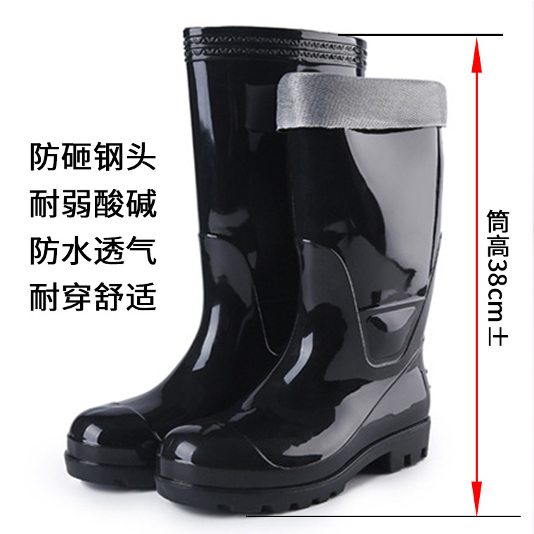 Aote 레인 스틸 헤드 안티 스매싱 38cm 블랙 하이 부츠 PVC 방수 내유성 장화 노동 보호 장화스토어 가기
