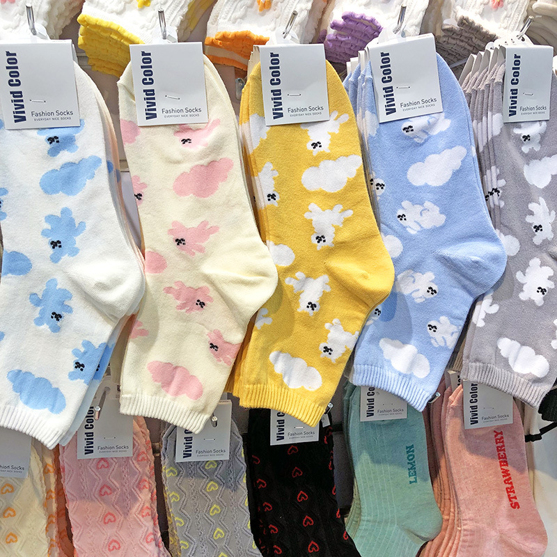 [재고] 한국 양말 여성 vivid2022 새로운 만화 면 양말 만화 구름 개 소녀 양말스토어 가기