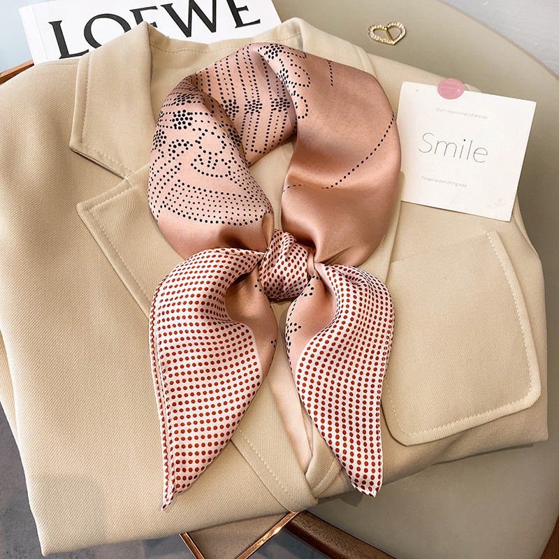 2022 봄과 가을 새로운 한국 스타일 실크 스카프 작은 사각 스카프 여성용 얇은 스카프 장식 헤어 벨트 스카프 넥타이 가방 목 보호 물방울 무늬