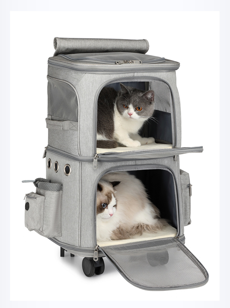 국경을 넘는 이중층 애완동물 트롤리 박스 고양이 가방 대용량 두 마리 고양이용 유모차 통기성 접이식 애완동물 외출 가방스토어 가기
