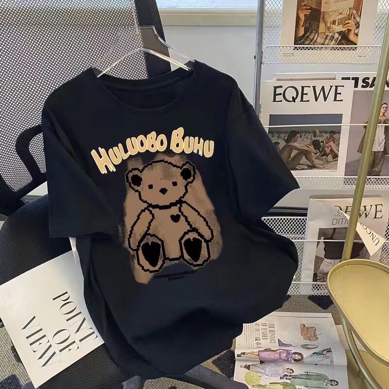 100 면 반팔 티셔츠 여성용 2023 여름 새로운 한국 스타일 슬림핏 심플 알파벳 인쇄 청소년 캐주얼스토어 가기