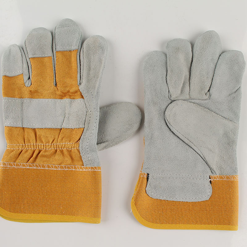 도매용 용접 내마모성 작업용 반가죽 용접 장갑 노란색 천 두 손가락 전용 전기 용접 아크 용접용
