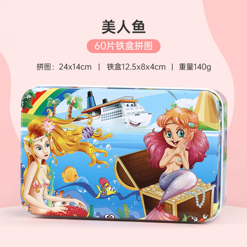 어린이 나무 퍼즐 조기 교육 만화 직소 퍼즐 유치원 선물 60 조각 나무 철 상자 직소 퍼즐