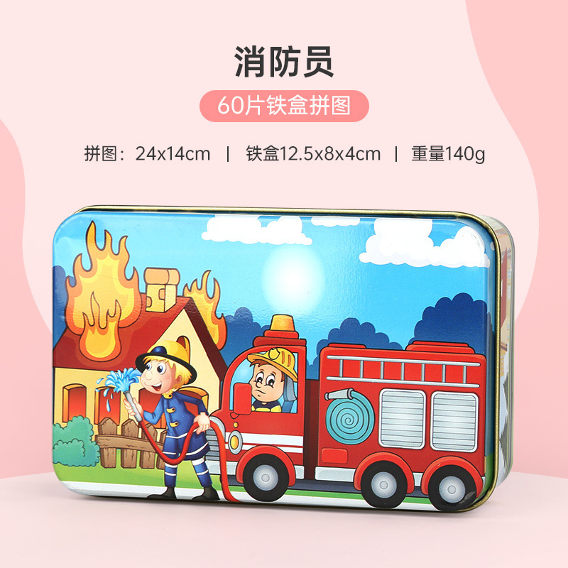 어린이 나무 퍼즐 조기 교육 만화 직소 퍼즐 유치원 선물 60 조각 나무 철 상자 직소 퍼즐스토어 가기