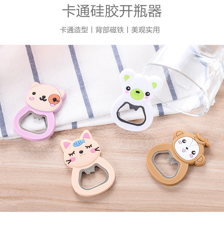 만화 귀여운 실리콘 다기능 와인 오프너 와인 병따개 맥주 병따개 창조적 인 냉장고 스티커스토어 가기
