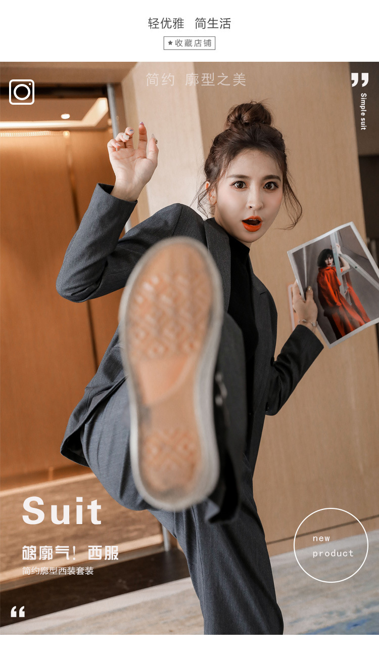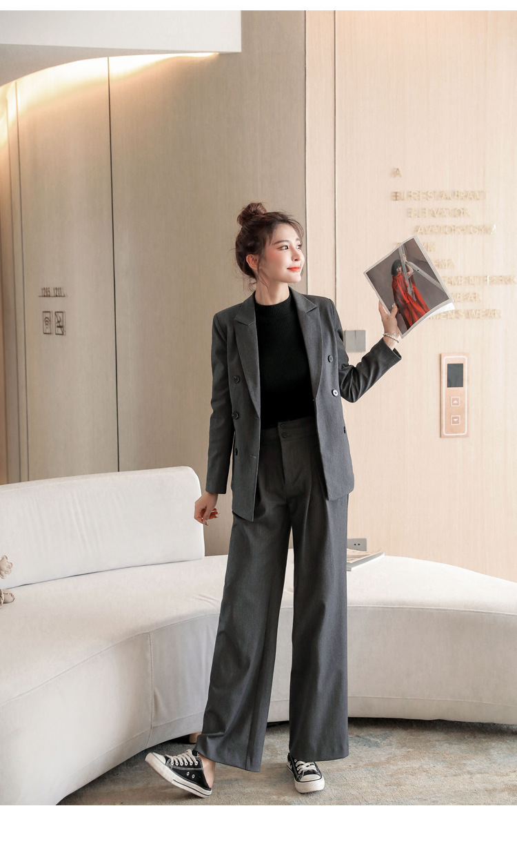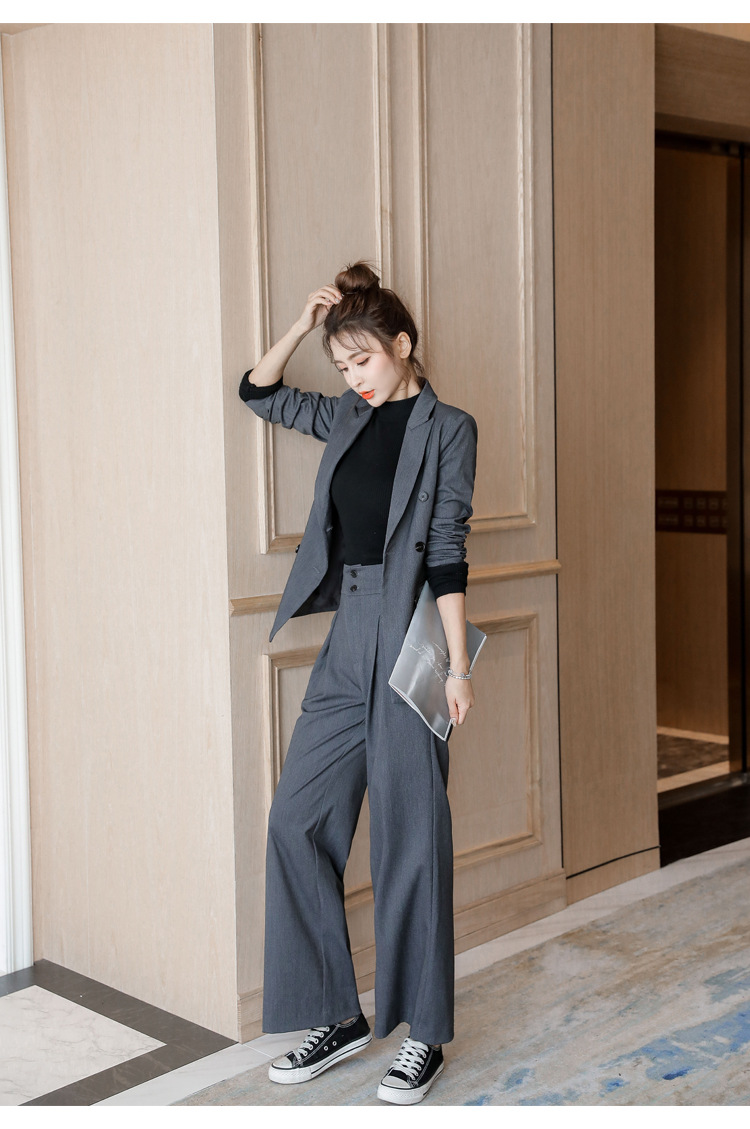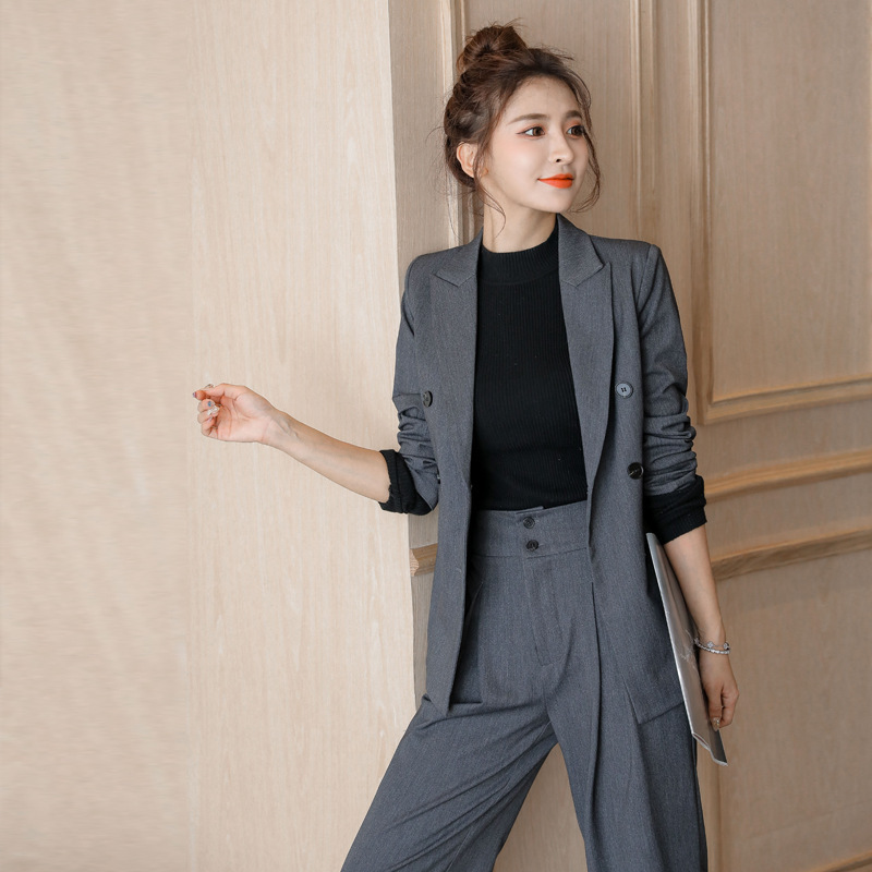 초봄 신상 일본 및 한국 스타일 여성용 블레이저 정장 세트 영국풍 와이드 팬츠 OL 스타일 투피스 정장스토어 가기
