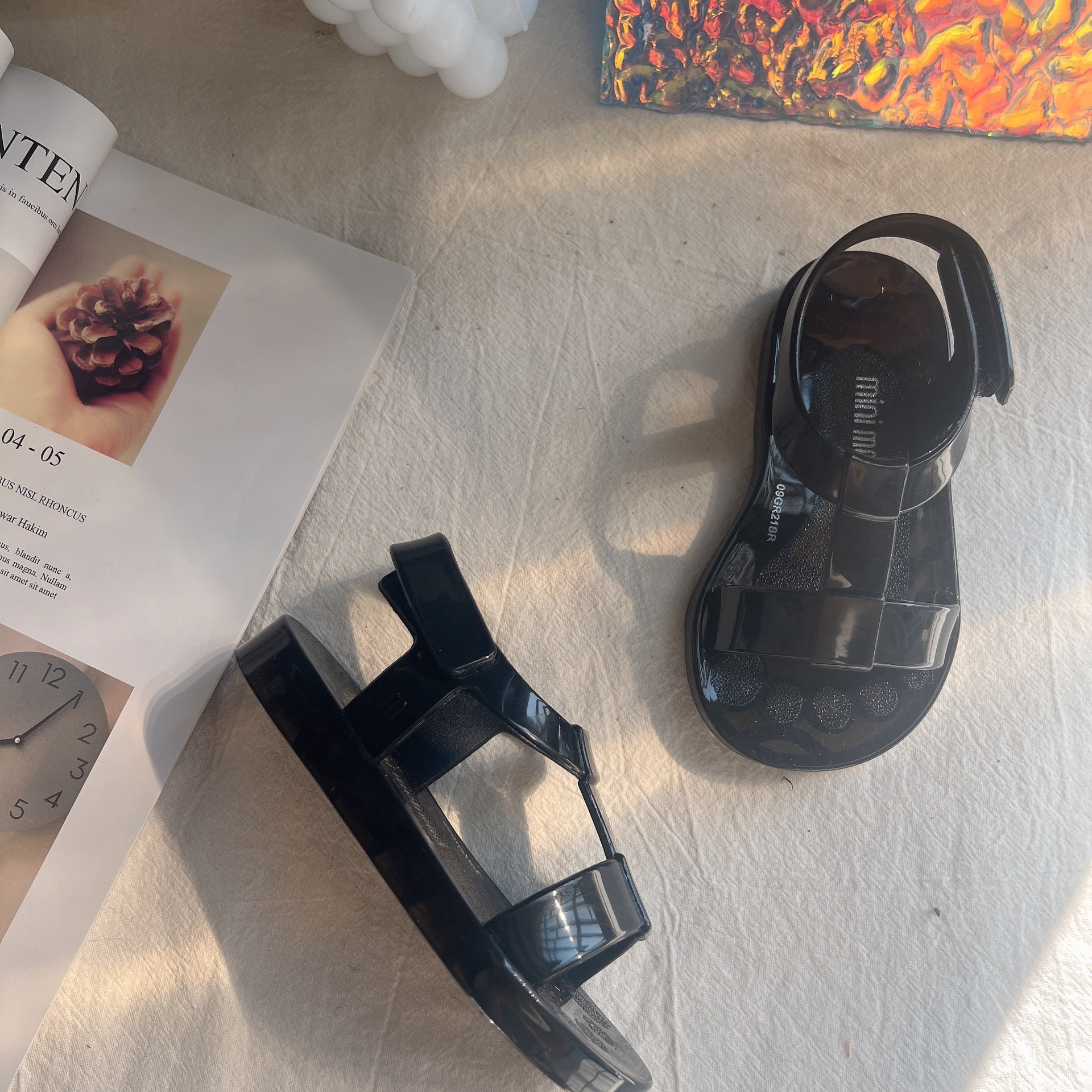 2022 여름 어린이 캐주얼 블랙 젤리 신발 벨크로 오픈 토 샌들 소년과 소녀 비치 신발 미끄럼 방지 및 트렌디스토어 가기