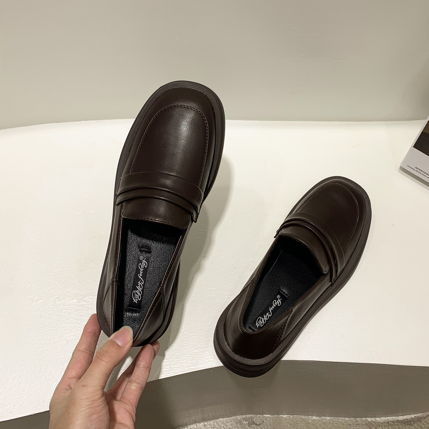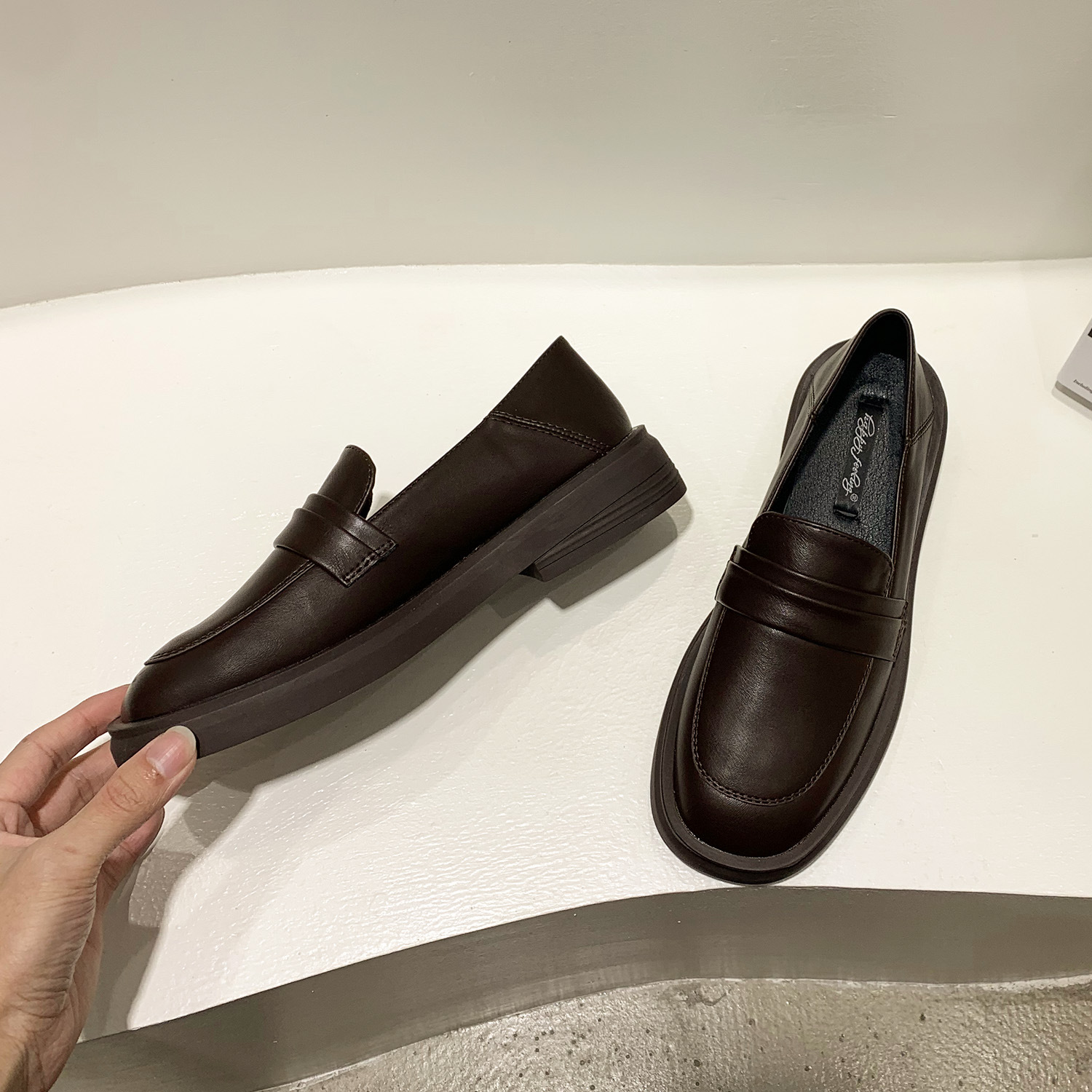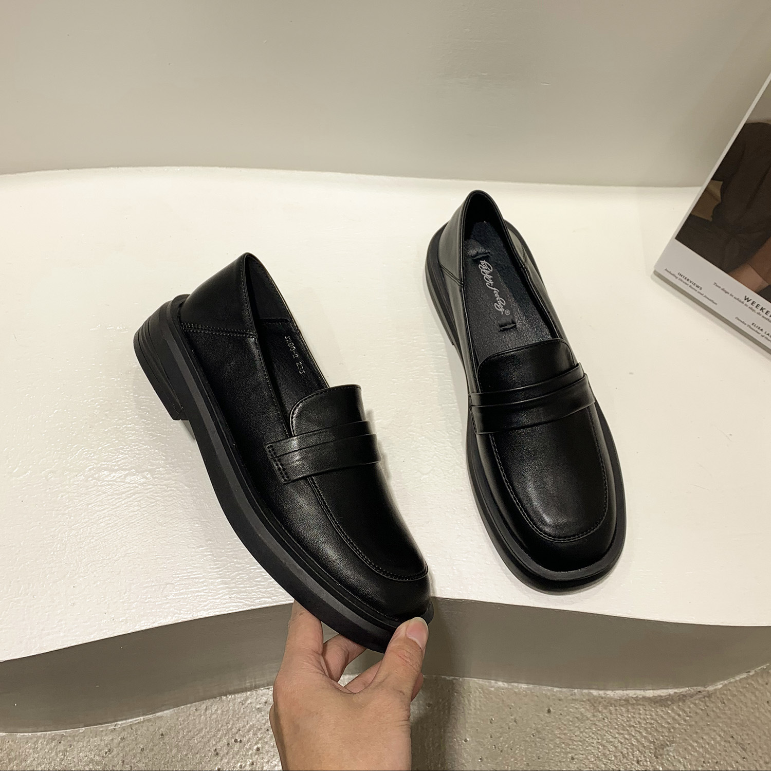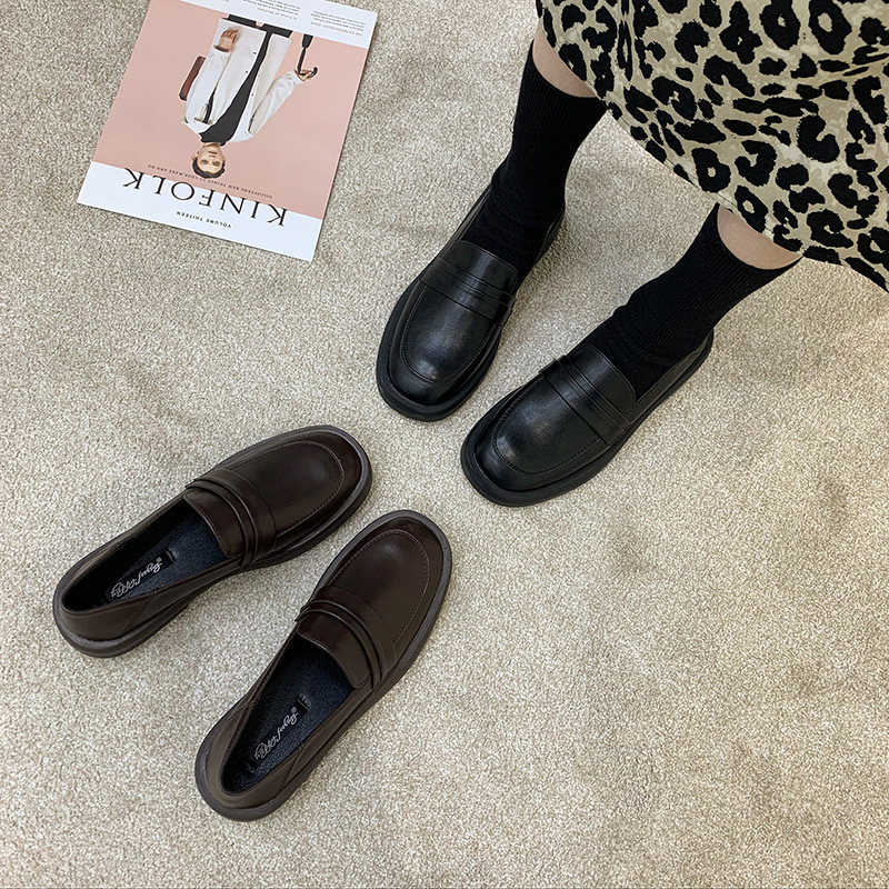 영국 스타일 작은 가죽 신발 여성용 2022 봄 새로운 플랫 싱글 레이어 신발 여성용 디자인 감각 틈새 빈티지 빈 로퍼스토어 가기