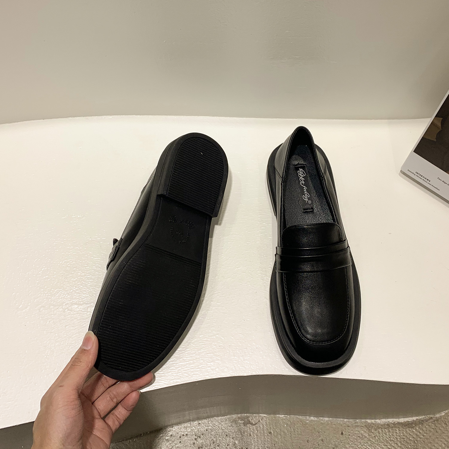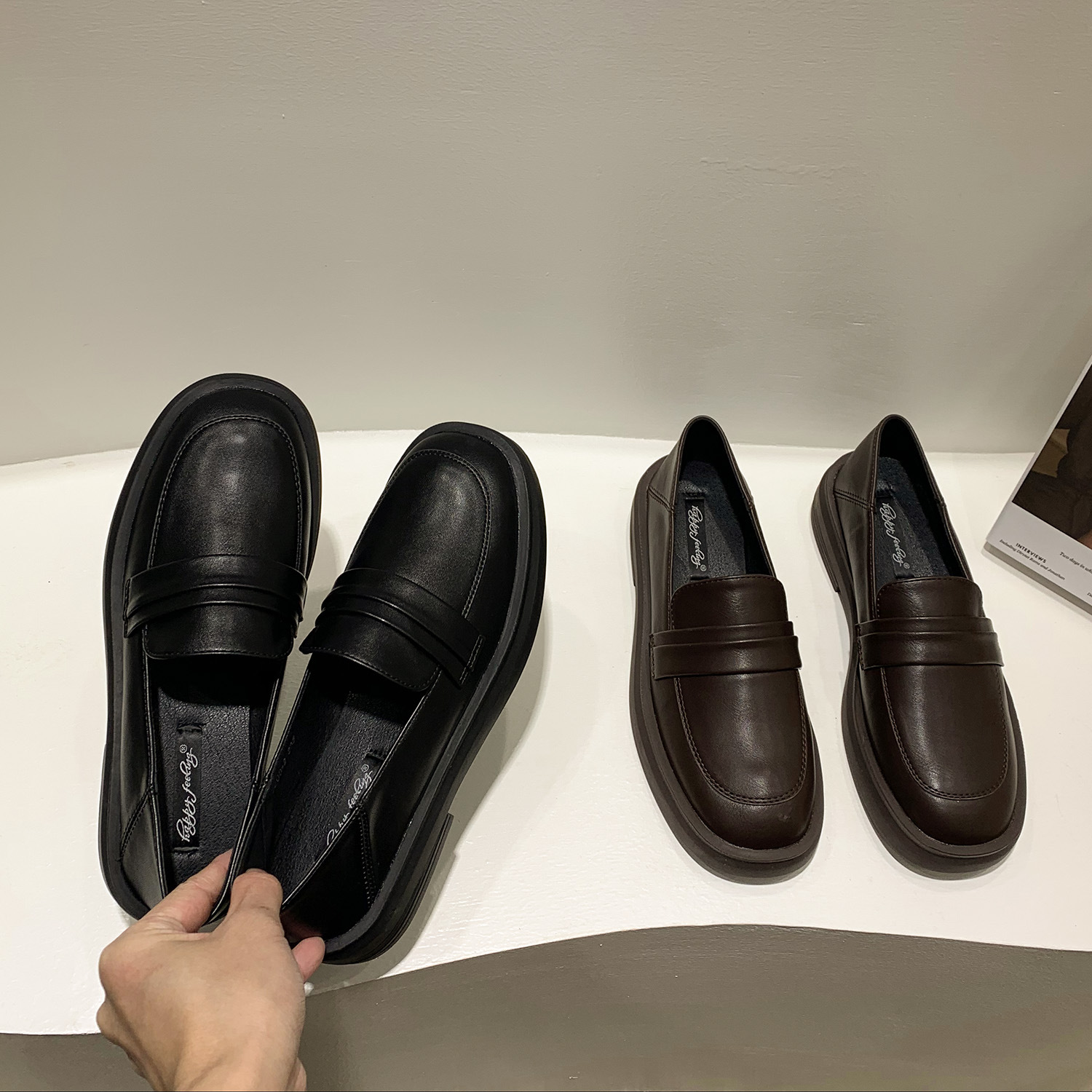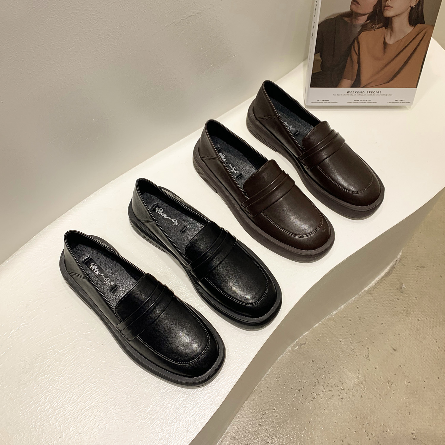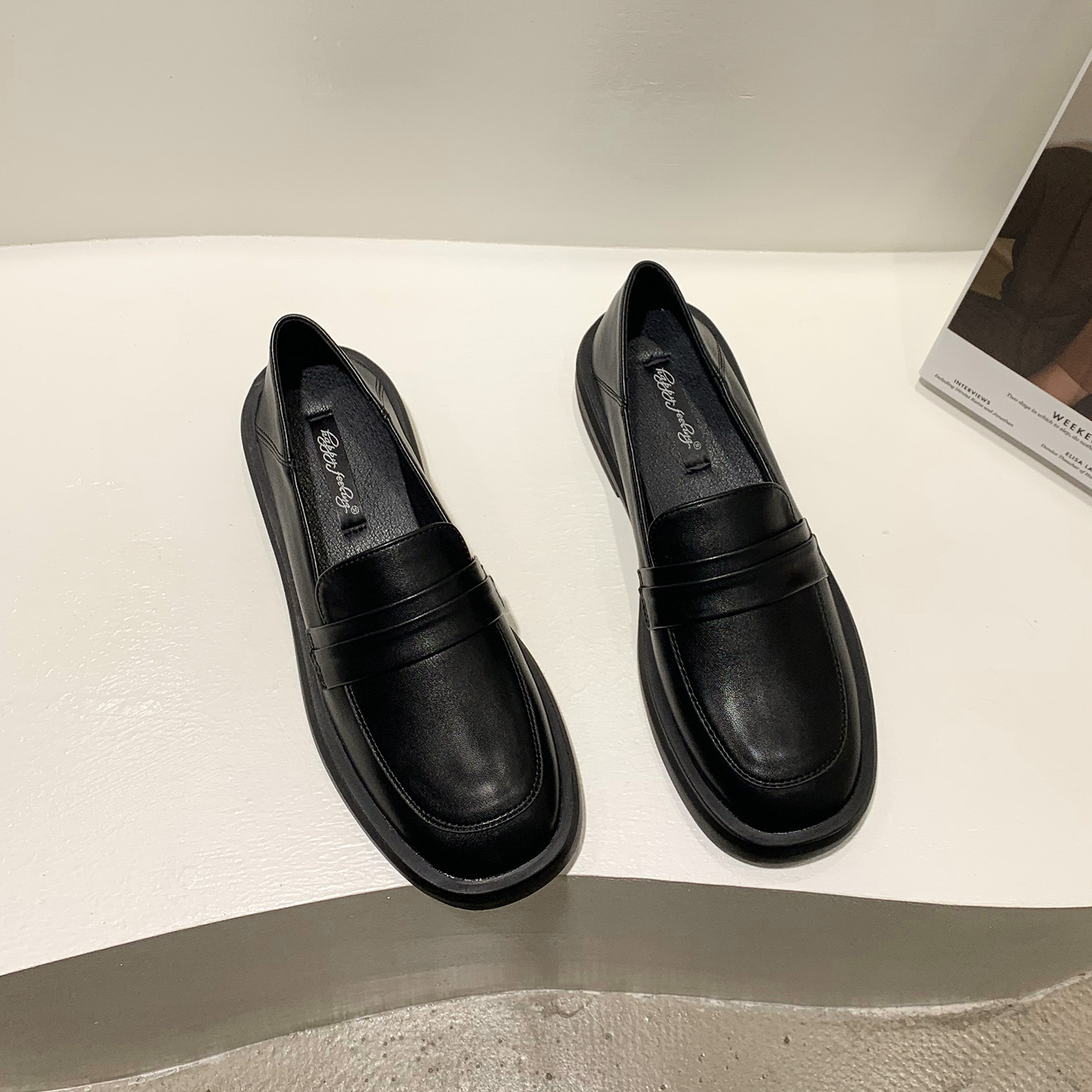 영국 스타일 작은 가죽 신발 여성용 2022 봄 새로운 플랫 싱글 레이어 신발 여성용 디자인 감각 틈새 빈티지 빈 로퍼스토어 가기
