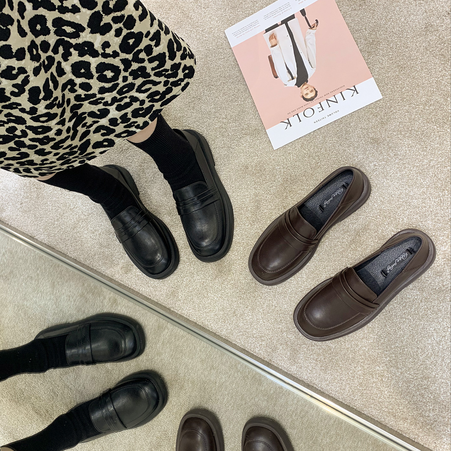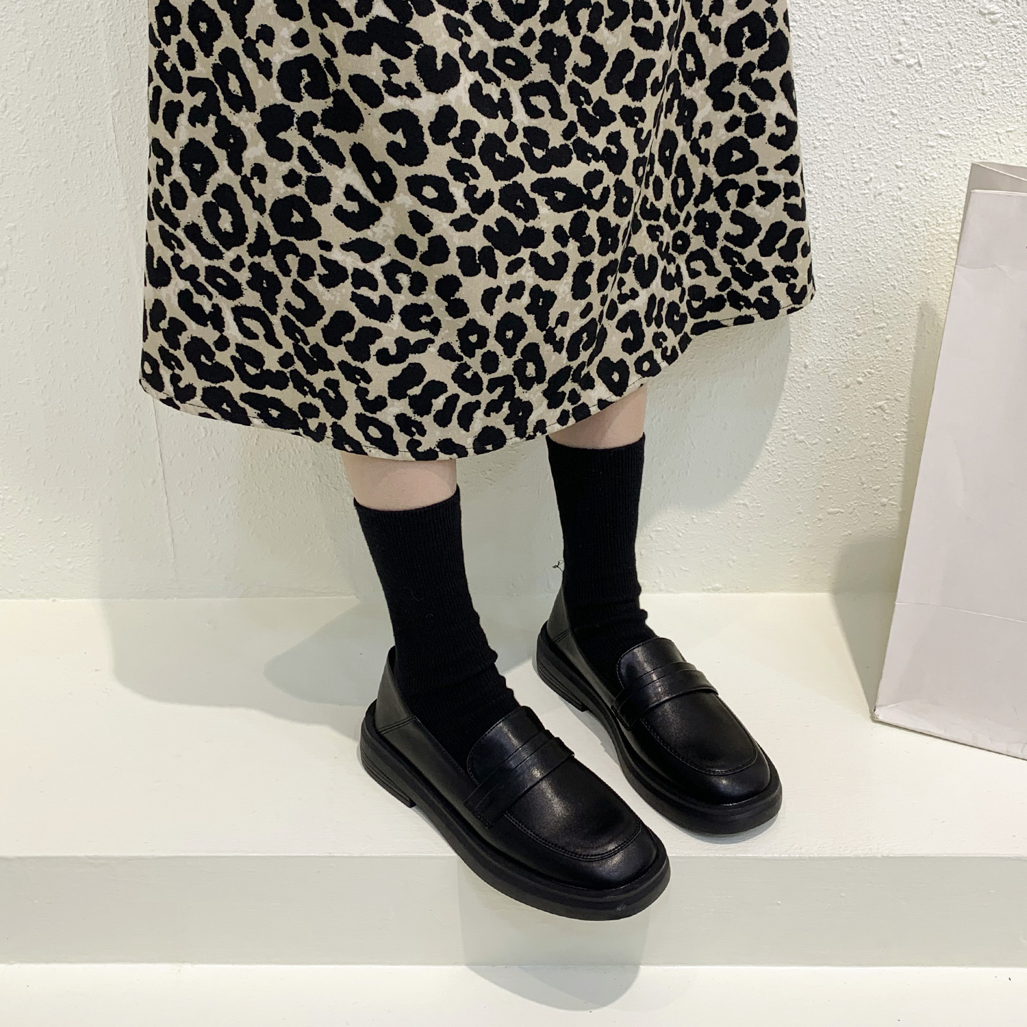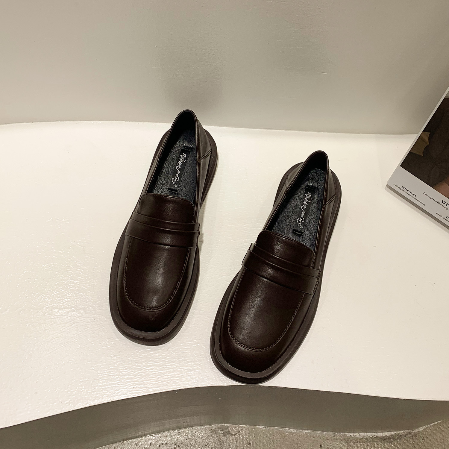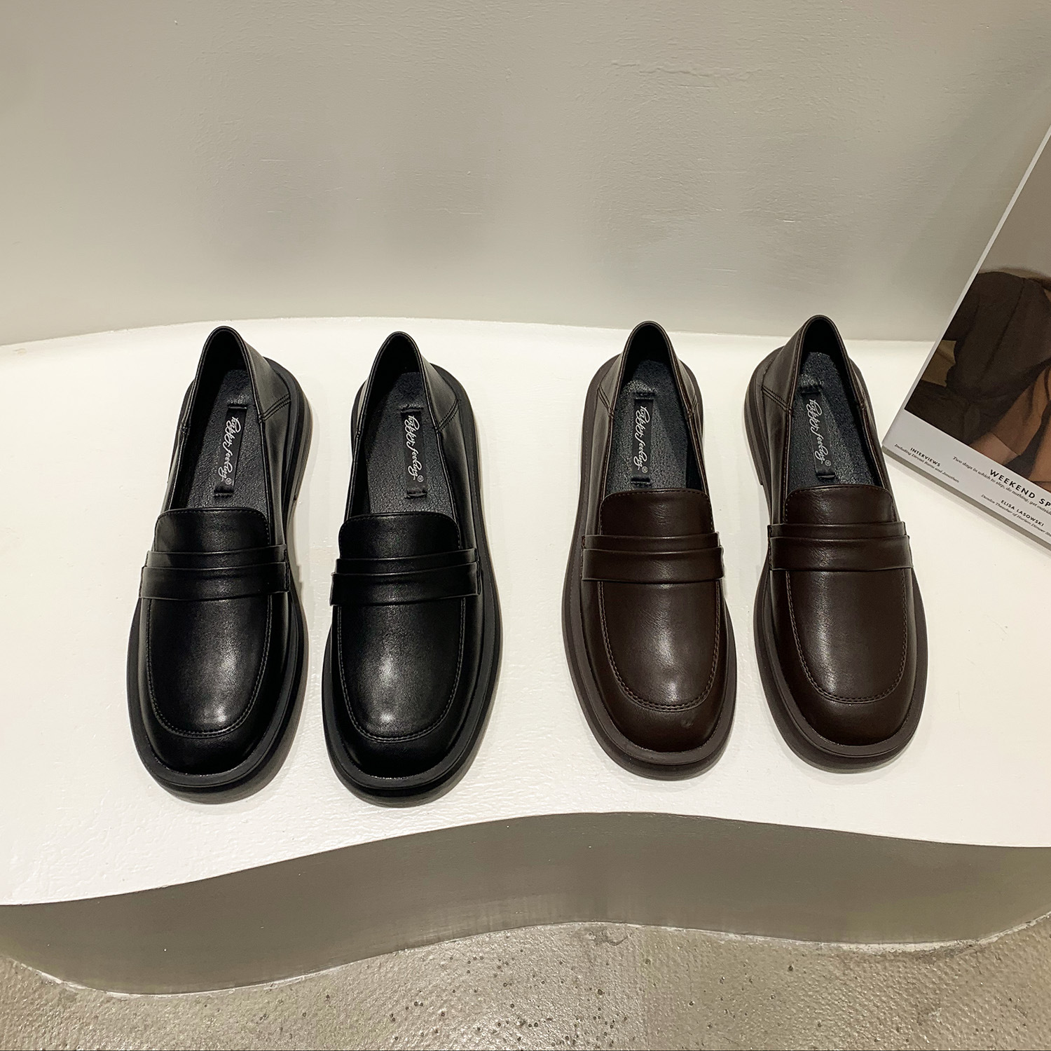 영국 스타일 작은 가죽 신발 여성용 2022 봄 새로운 플랫 싱글 레이어 신발 여성용 디자인 감각 틈새 빈티지 빈 로퍼스토어 가기