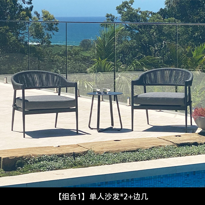북유럽 스타일 야외 로프 소파 조합 식탁 식당 식당 티크 안뜰 야외 빌라 홈스테이 레저 정원