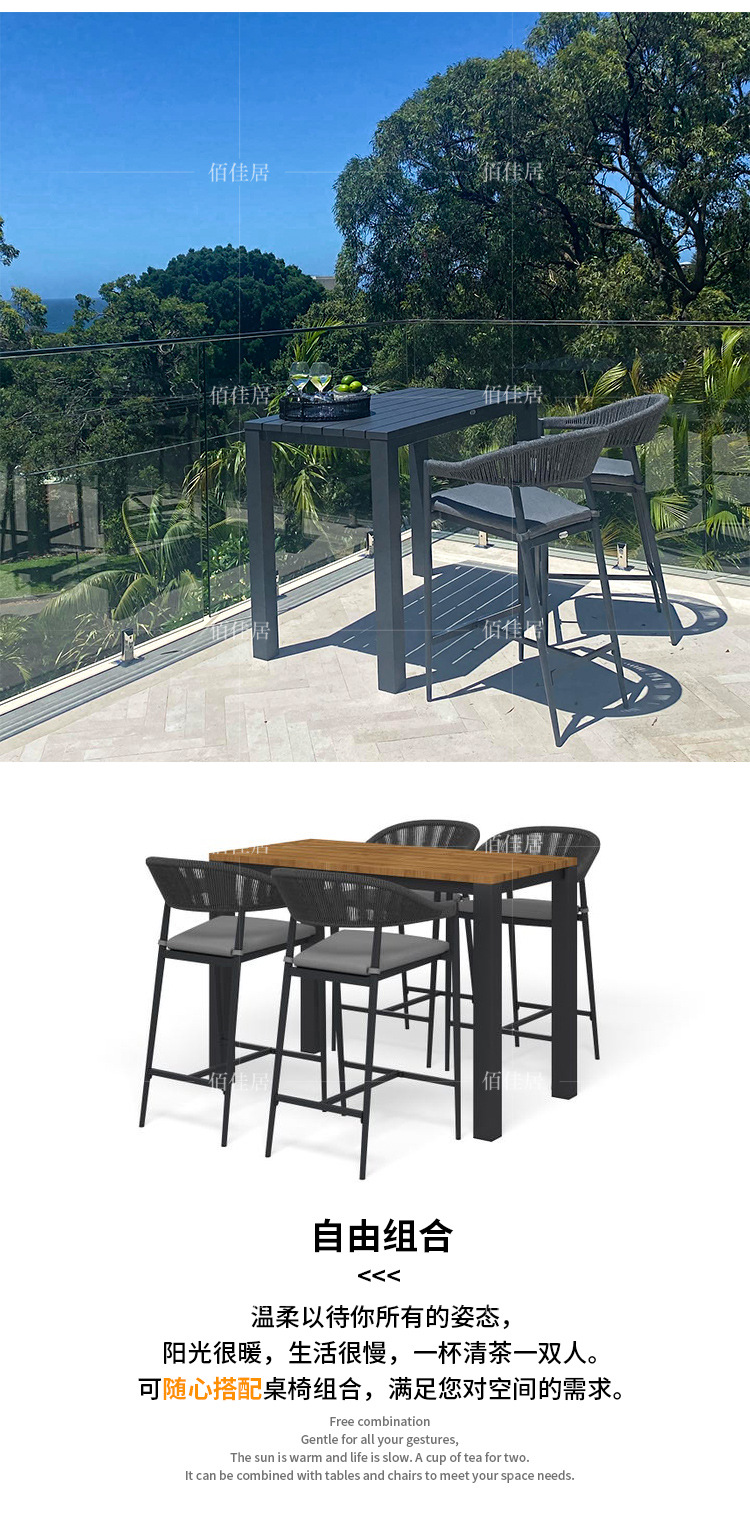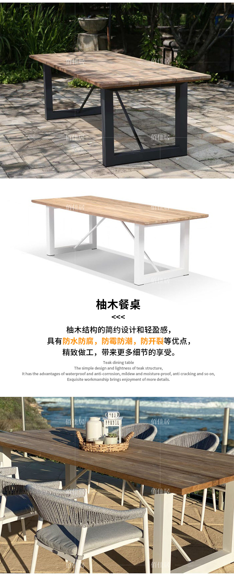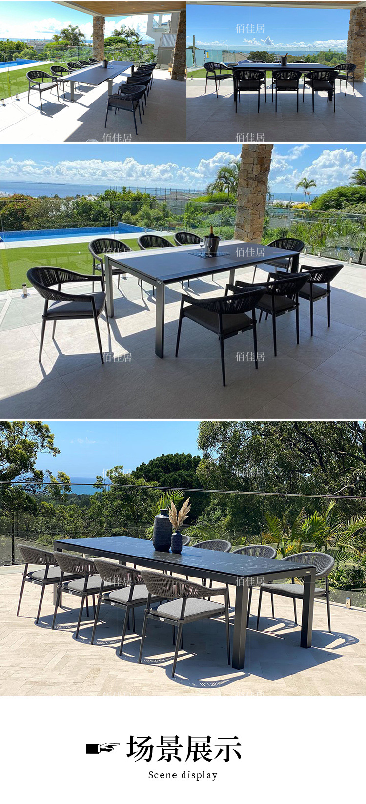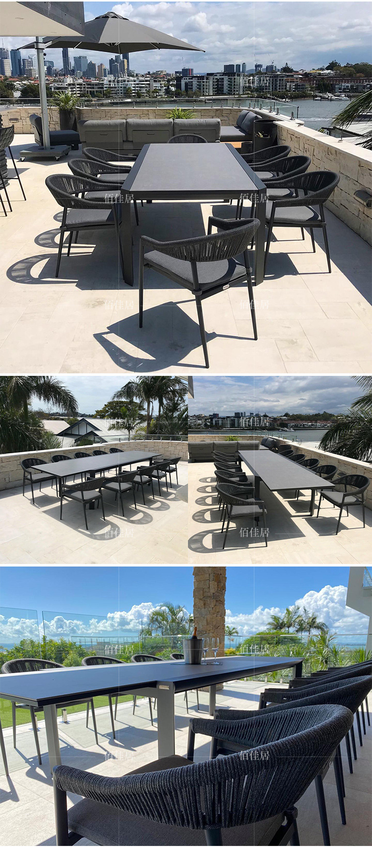 북유럽 스타일 야외 로프 소파 조합 식탁 식당 식당 티크 안뜰 야외 빌라 홈스테이 레저 정원스토어 가기