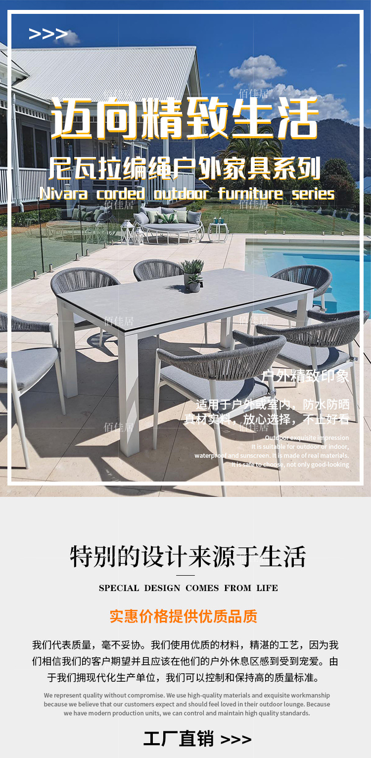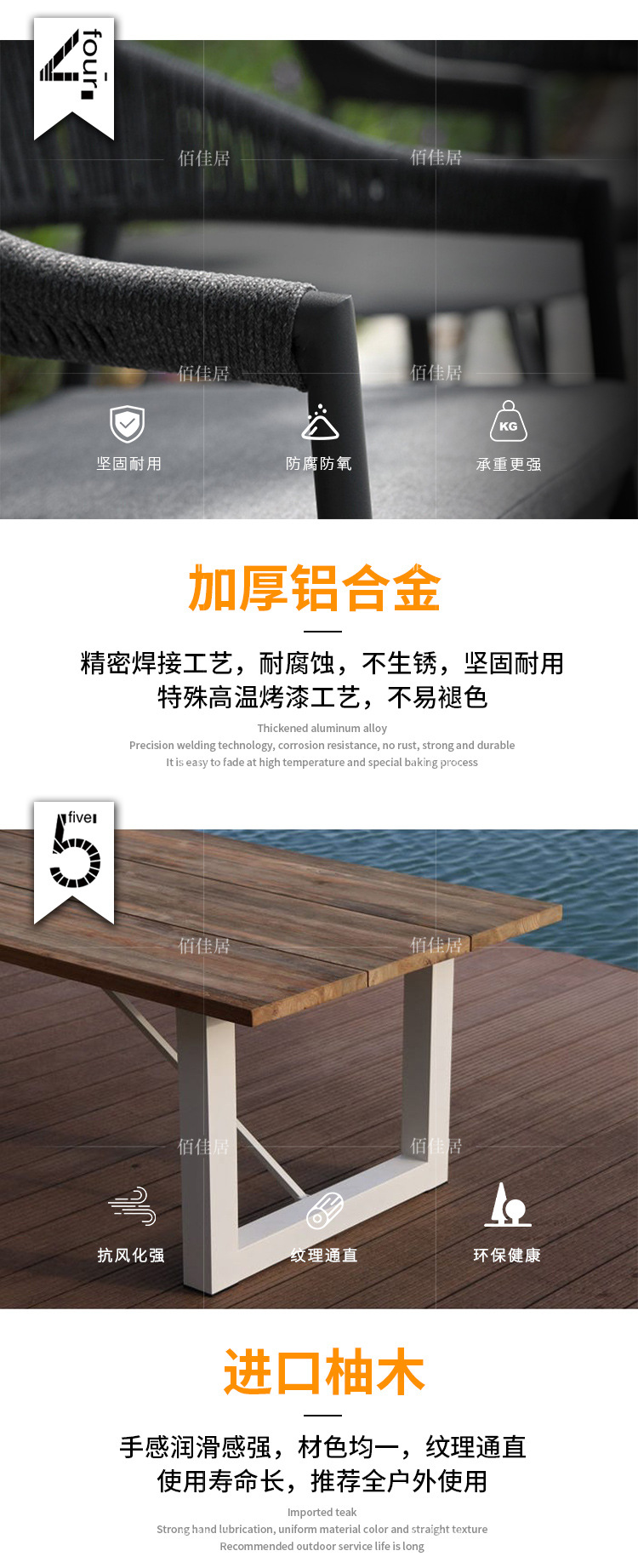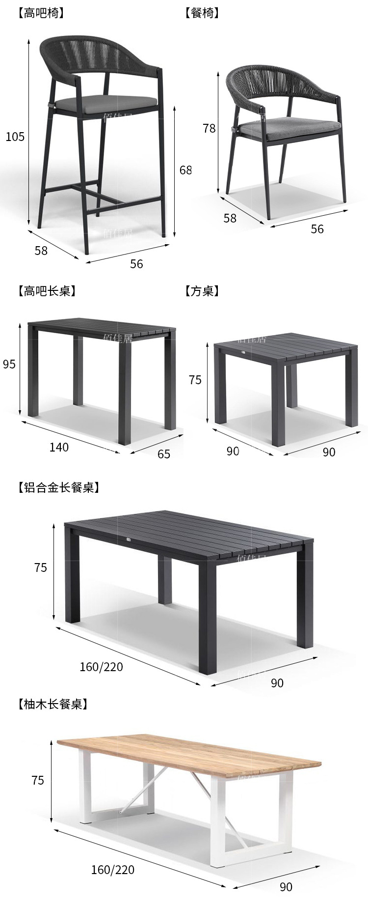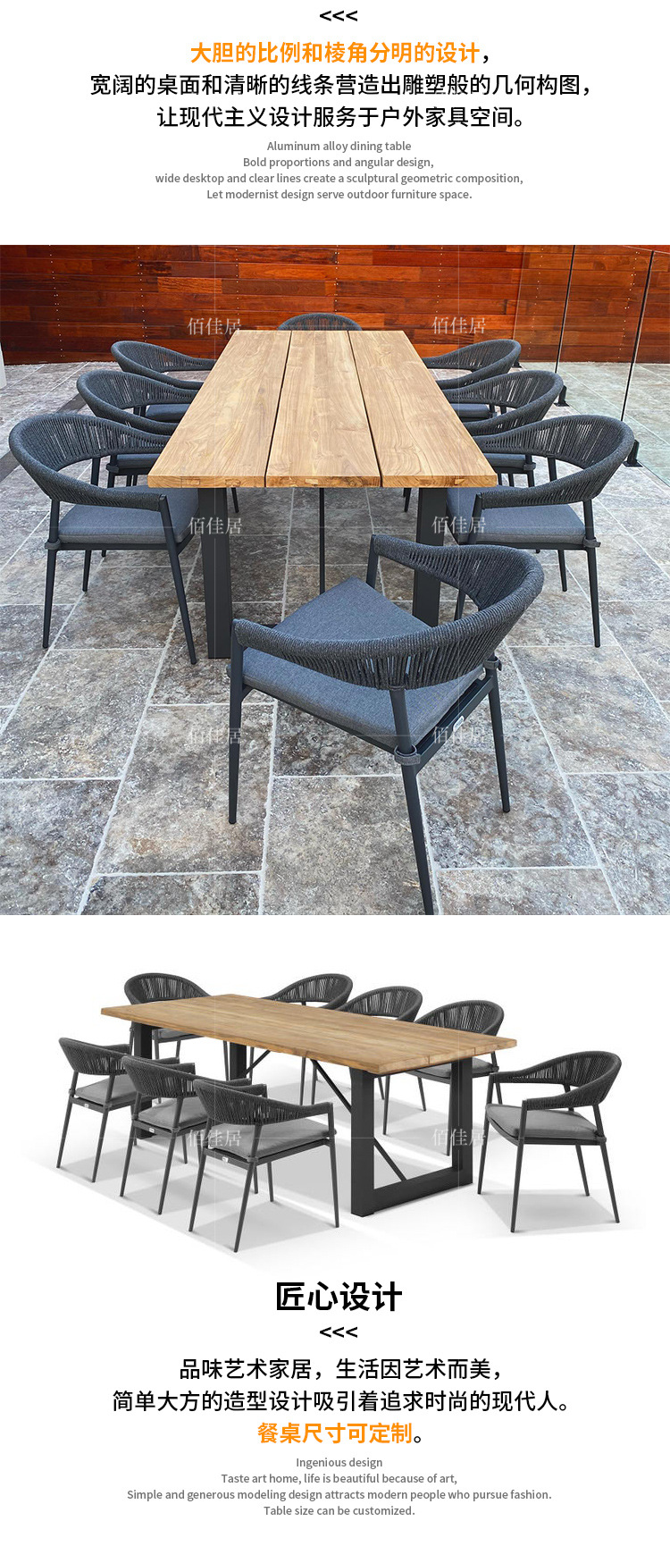 북유럽 스타일 야외 로프 소파 조합 식탁 식당 식당 티크 안뜰 야외 빌라 홈스테이 레저 정원스토어 가기