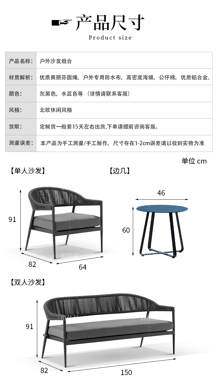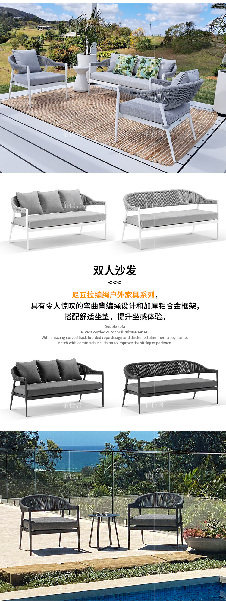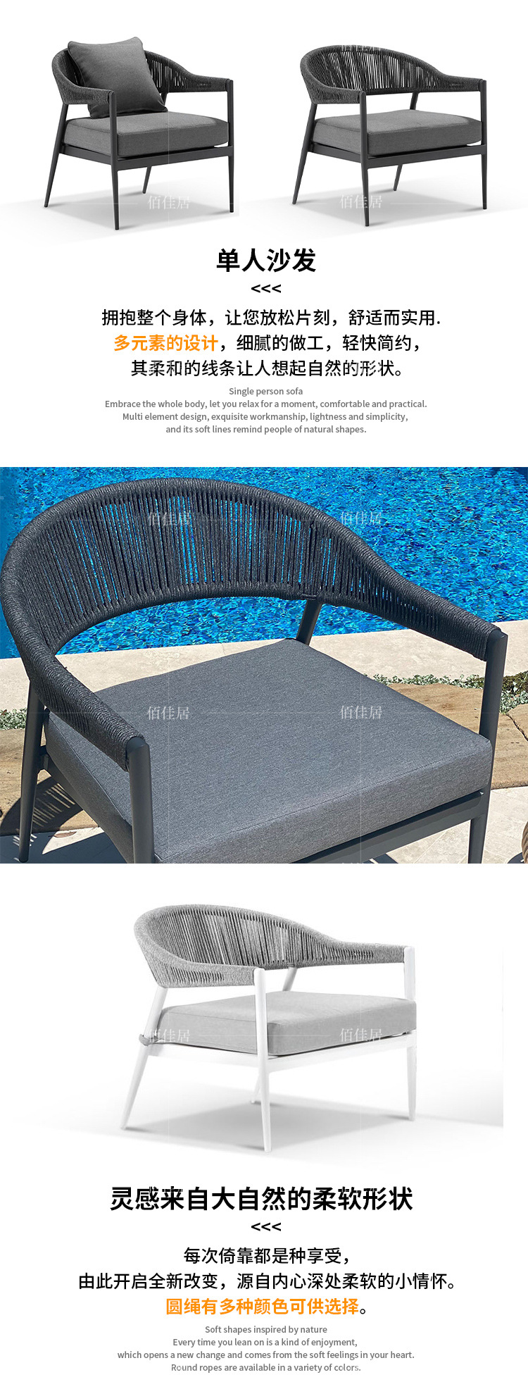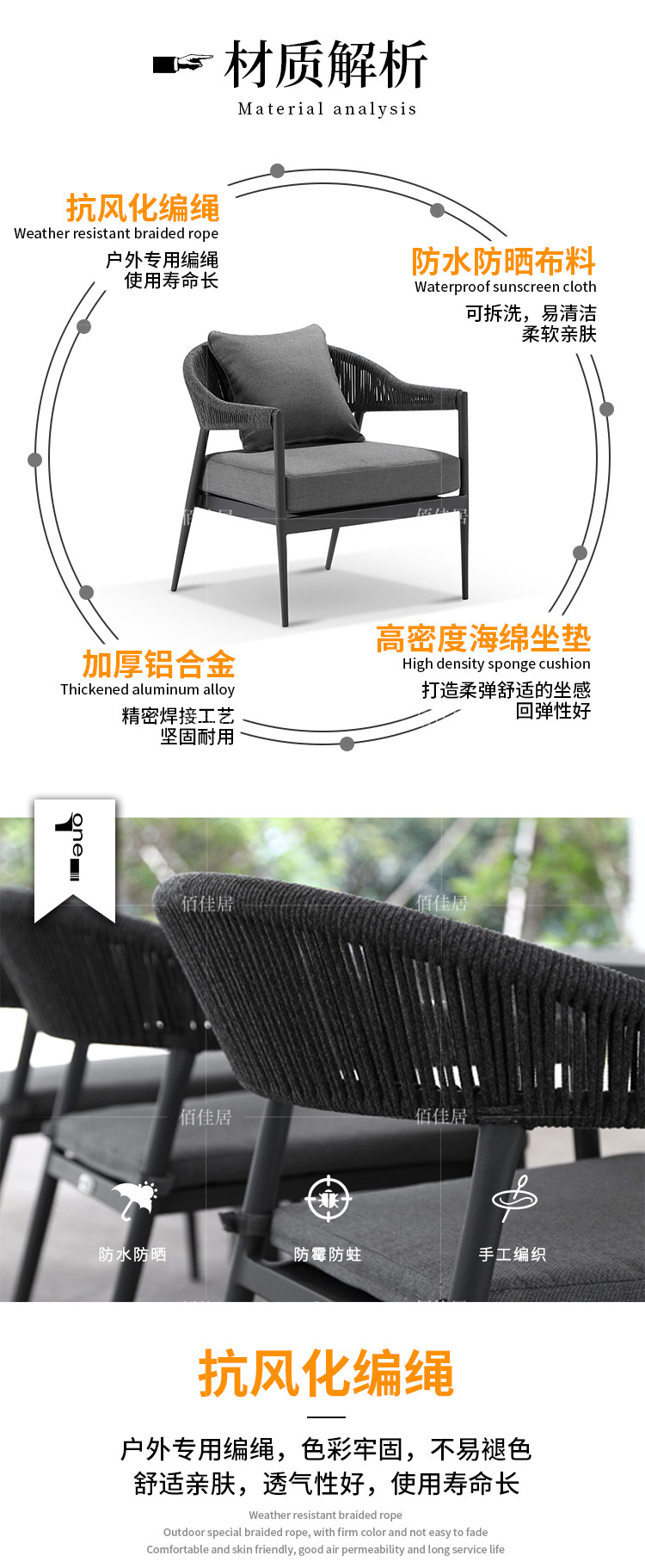 북유럽 스타일 야외 로프 소파 조합 식탁 식당 식당 티크 안뜰 야외 빌라 홈스테이 레저 정원스토어 가기