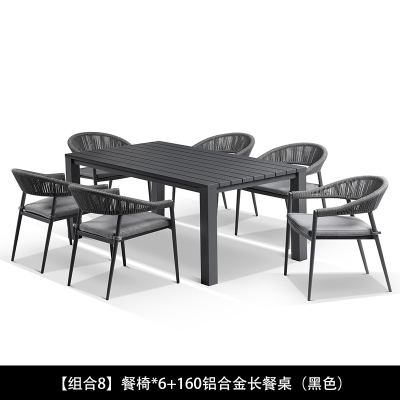 • [콤비네이션 8] 다이닝 체어 * 6 + 160 알루미늄 합금 롱 식탁 (블랙)