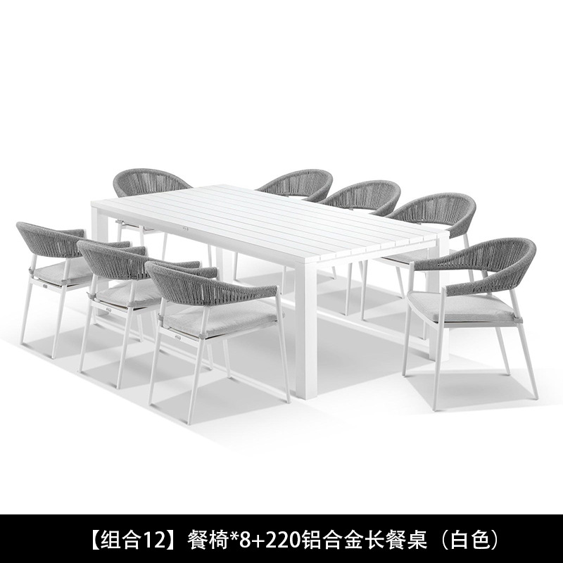 • [콤비네이션 12] 다이닝 체어 * 8 + 220 알루미늄 합금 롱 식탁 (화이트)