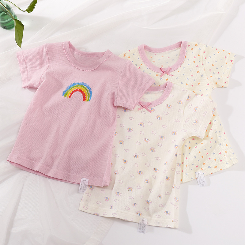 여름 얇은 소년 소녀 진주 코튼 탑 부드러운 통기성 어린이 티셔츠 투피스 홈 웨어러블스토어 가기