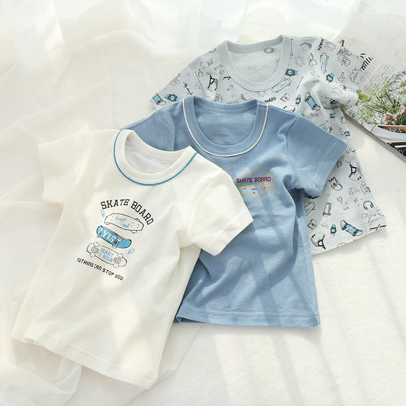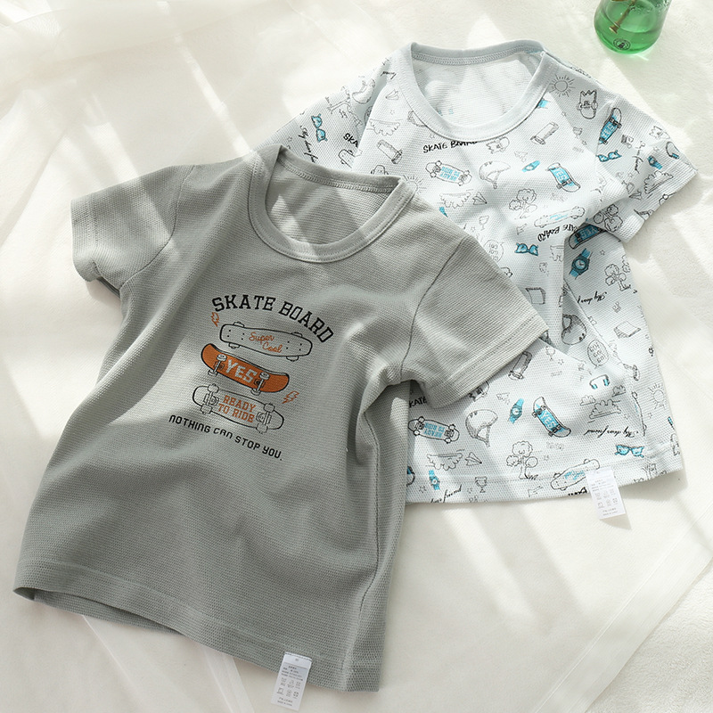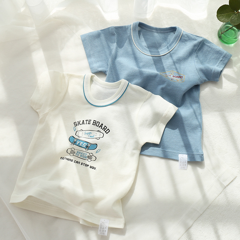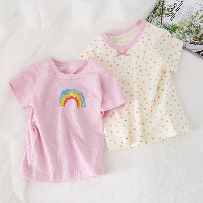 여름 얇은 소년 소녀 진주 코튼 탑 부드러운 통기성 어린이 티셔츠 투피스 홈 웨어러블