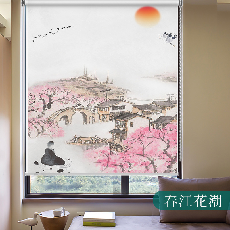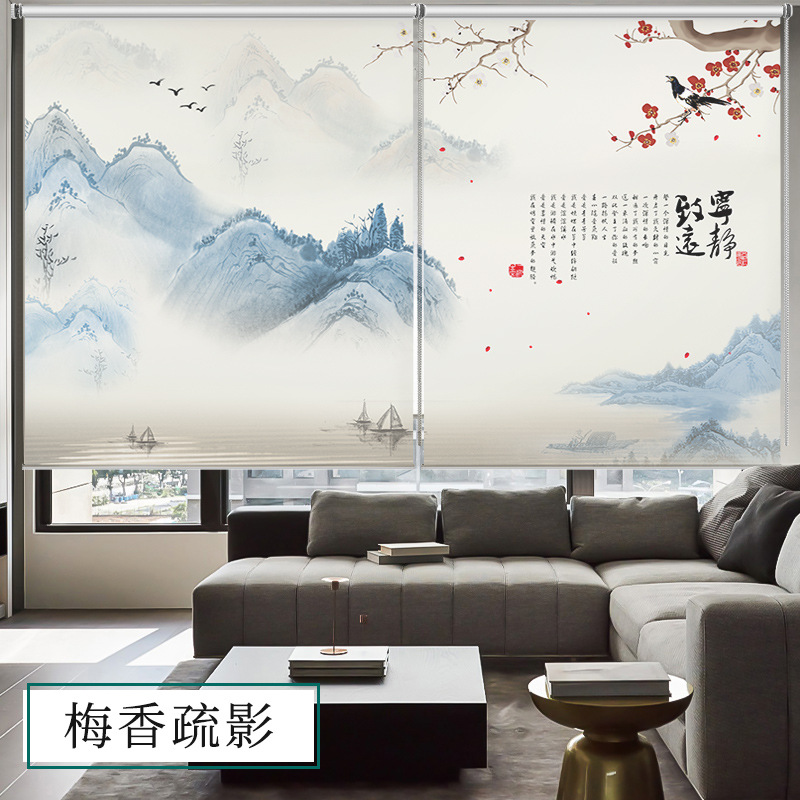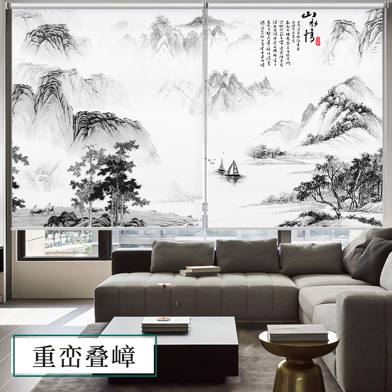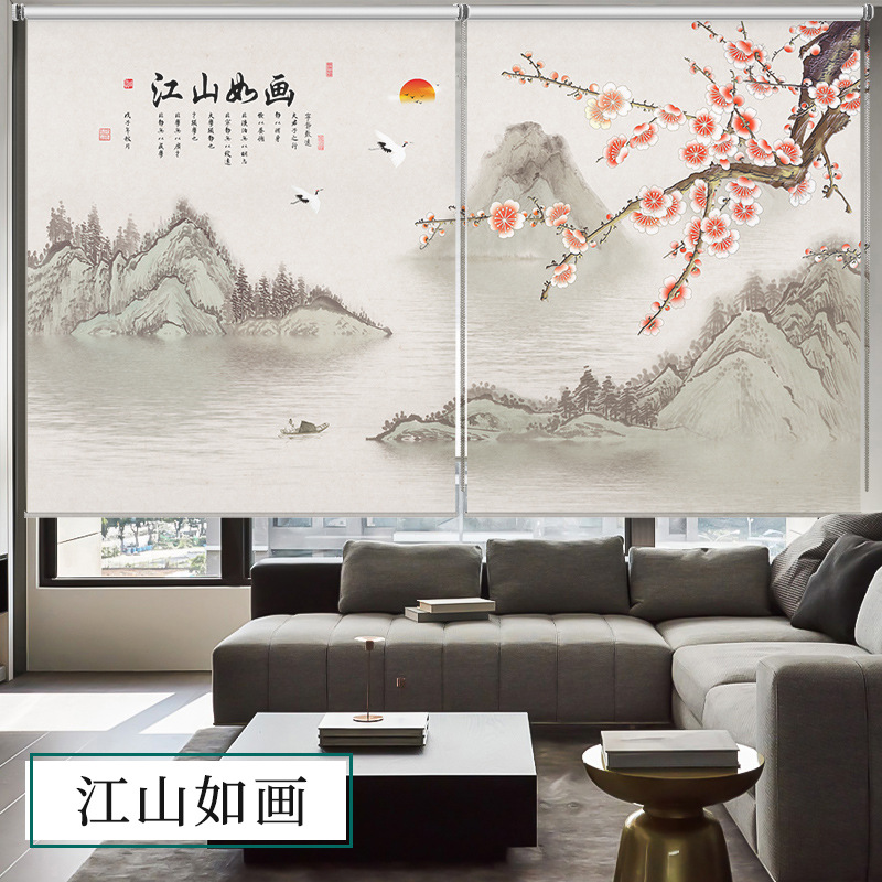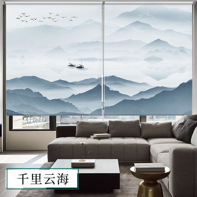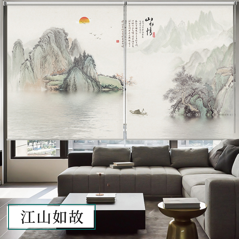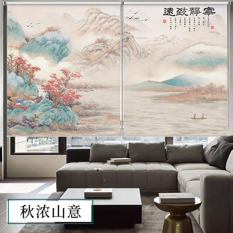 롤러블라인드, 산수화 배경벽, 차광 및 자외선 차단, 전동 롤러블라인드, 칸막이, 사무실, 거실, 서재스토어 가기