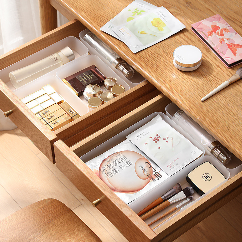 데스크탑 스토리지 박스 플라스틱 프로스트 스토리지 랙 파일 바구니 립스틱 스킨 케어 화장품 주방 스푼 젓가락 서랍 상자스토어 가기