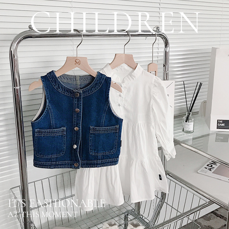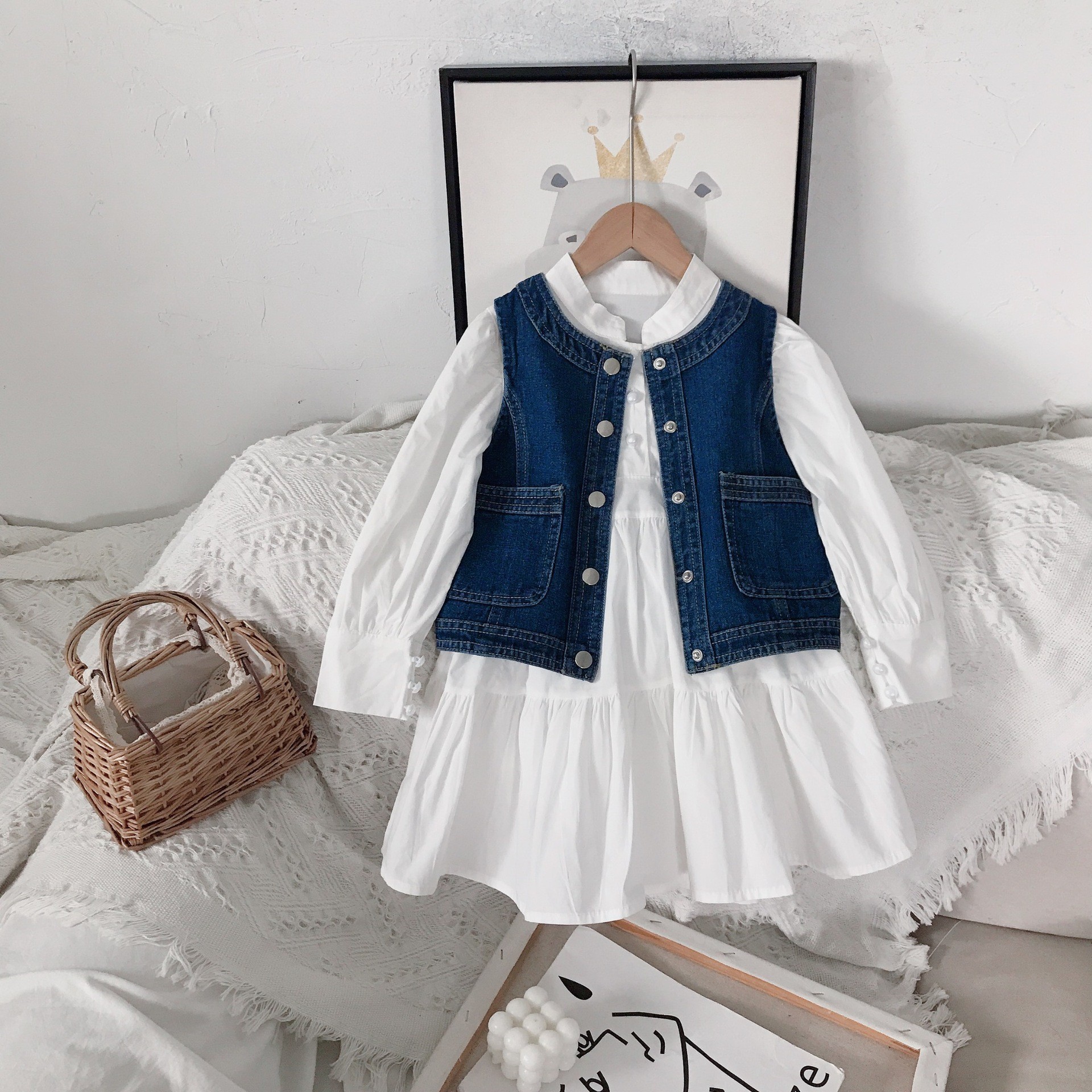 소녀 세트 2025 봄과 가을 새로운 여성 아기 한국어 버전의 데님 조끼 원피스 투피스 세트 머리카락스토어 가기