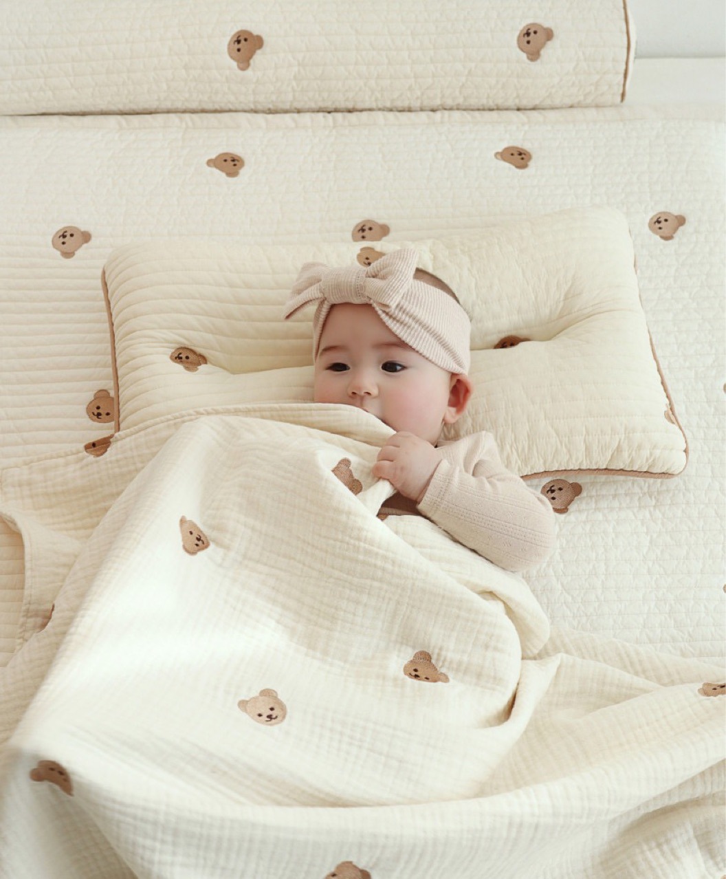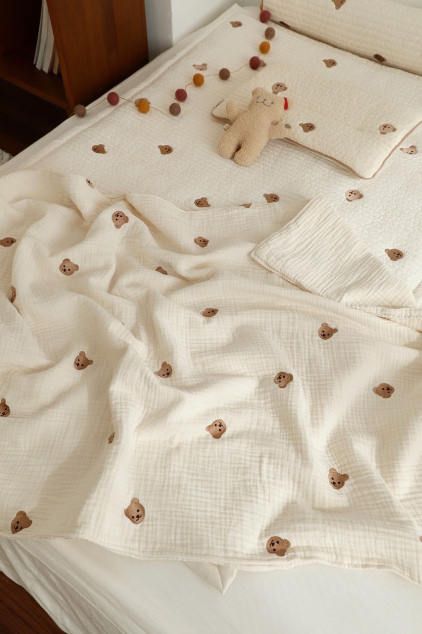 6层纱布纯棉小熊盖毯,柔软亲肤,非常适合宝宝