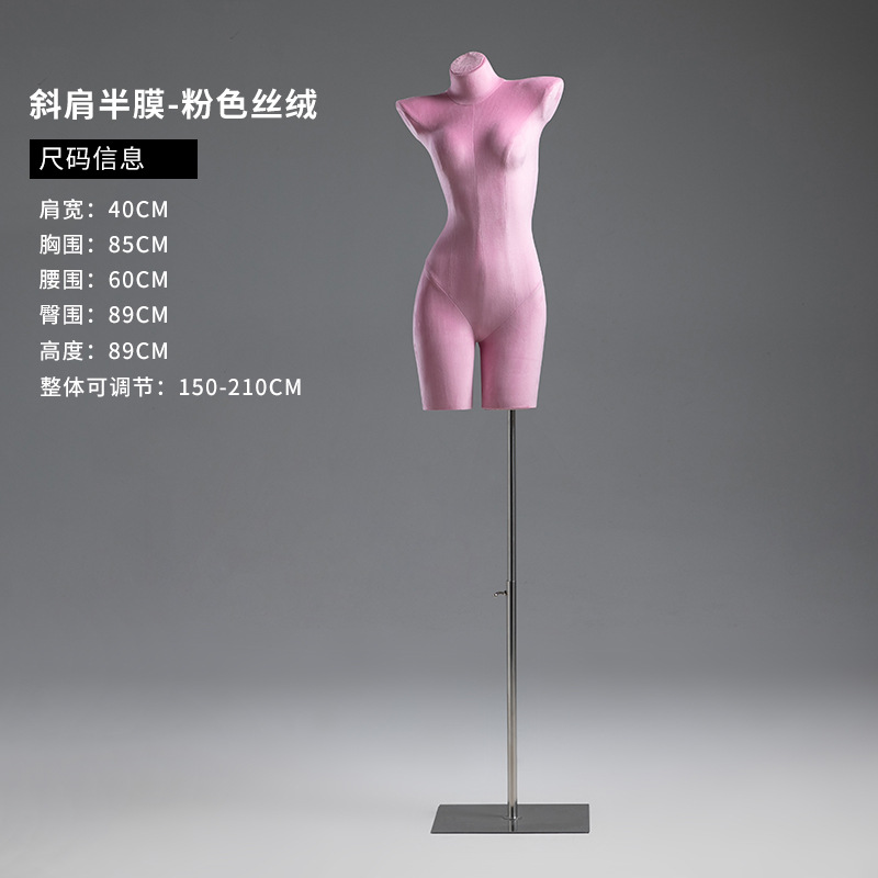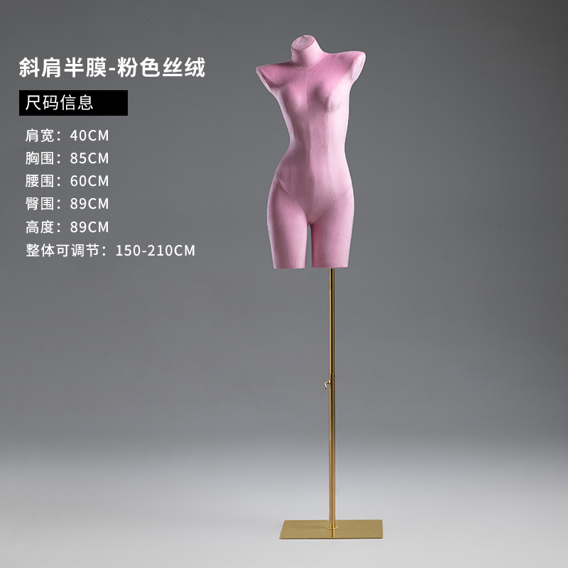 • 핑크 여자 비스듬한 어깨 벨벳 하프 몰드 금베이스