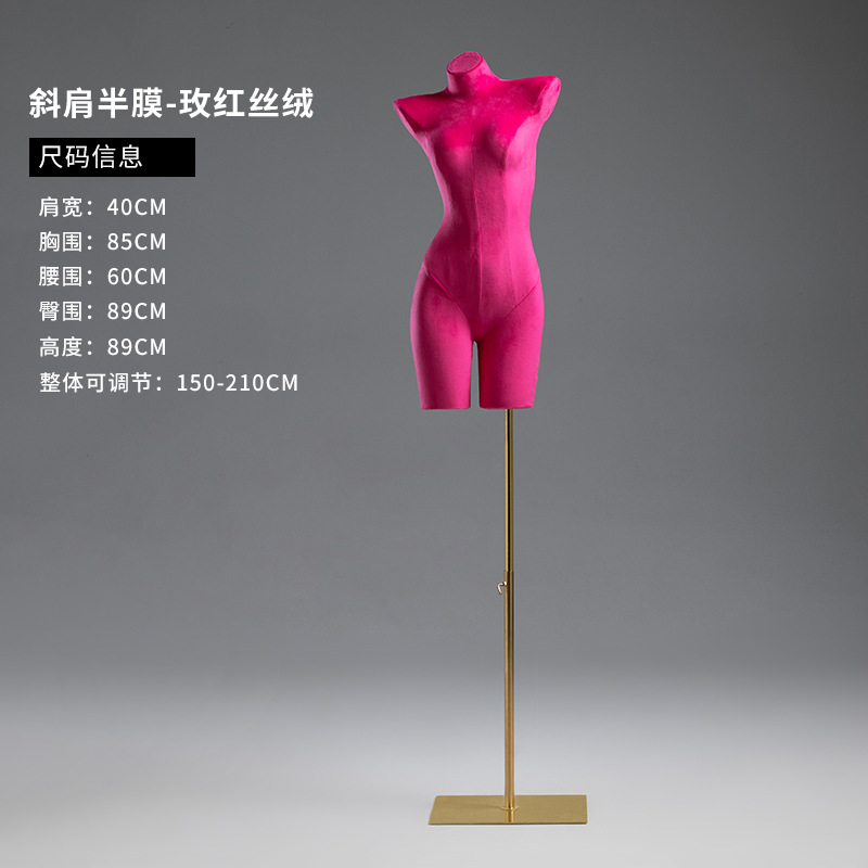 • 로즈 레드 여성의 기울어 진 어깨 벨벳 하프 몰드 황금베이스