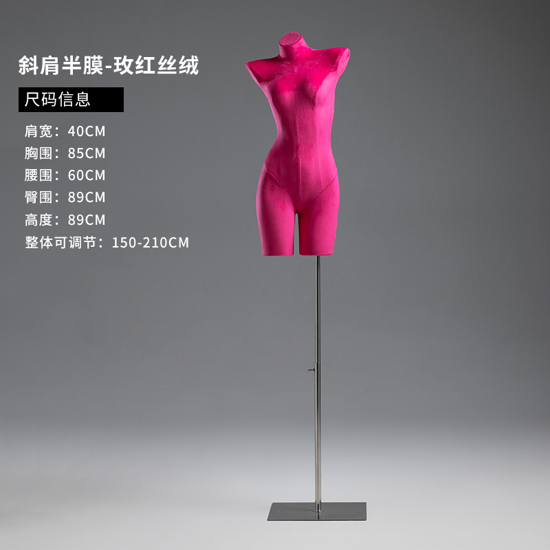 • 로즈 레드 여성의 기울어 진 어깨 벨벳 하프 몰드 실버 베이스