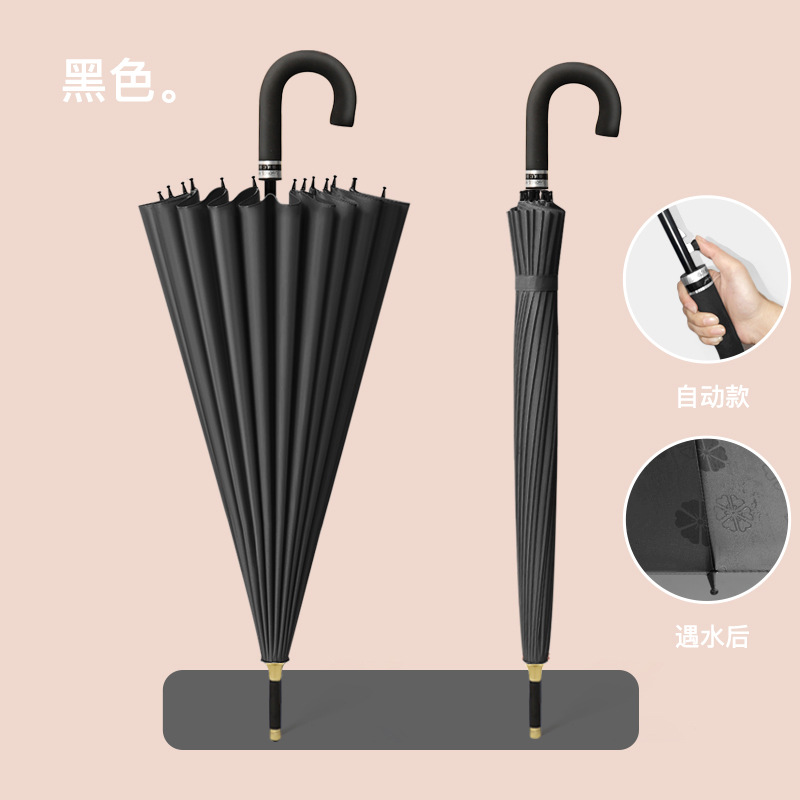 24 물 속에 뼈 꽃 초대형 직선 우산 곡선 핸들 더블 비즈니스 선물 우산 긴 손잡이 남성과 여성을위한 우산 로고 인쇄