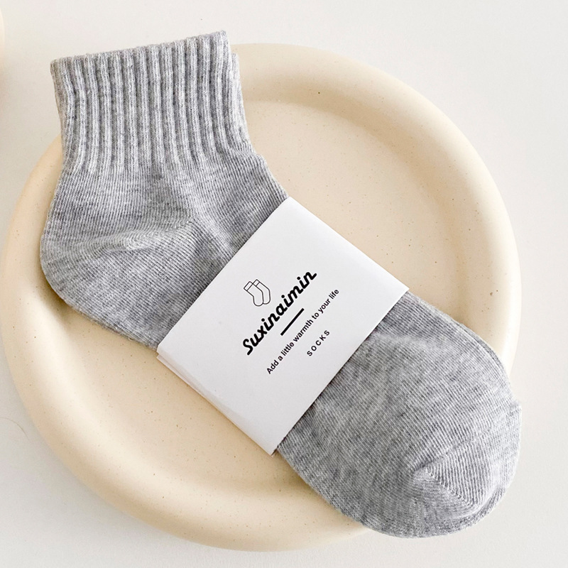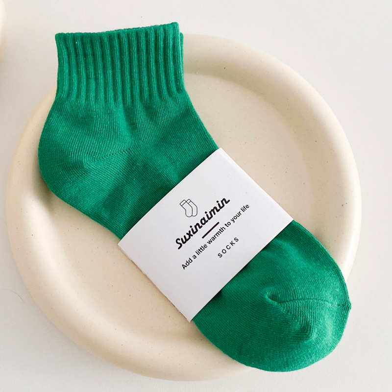 봄과 여름 한국 스타일 심플 솔리드 컬러 양말 어린이 중간 길이 양말 녹색 모든 경기 트렌디 대학 스타일 흑백 면 양말스토어 가기