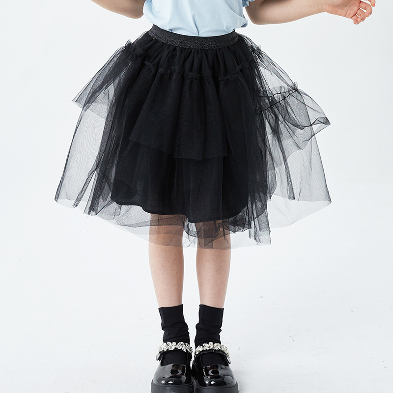 여아용 스커트 2025 봄 여름 어린이 퍼프 스커트 블랙 메쉬 스커트 여아 케이크 스커트 공주 스커트