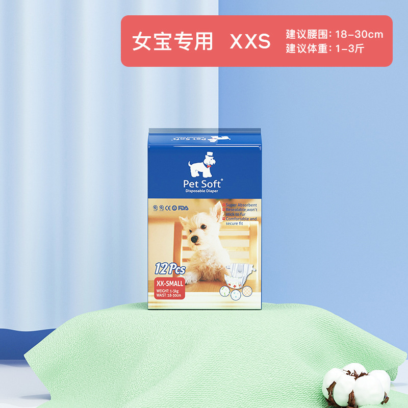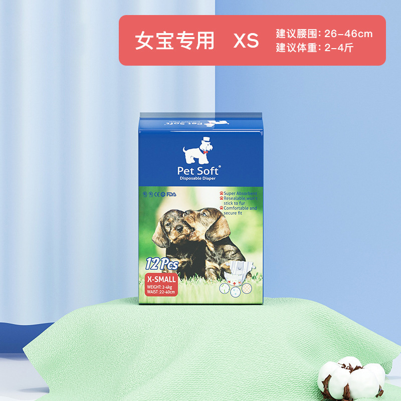【规格】:xs码   12片/包*24包/箱  建议狗狗腰围15-33cm