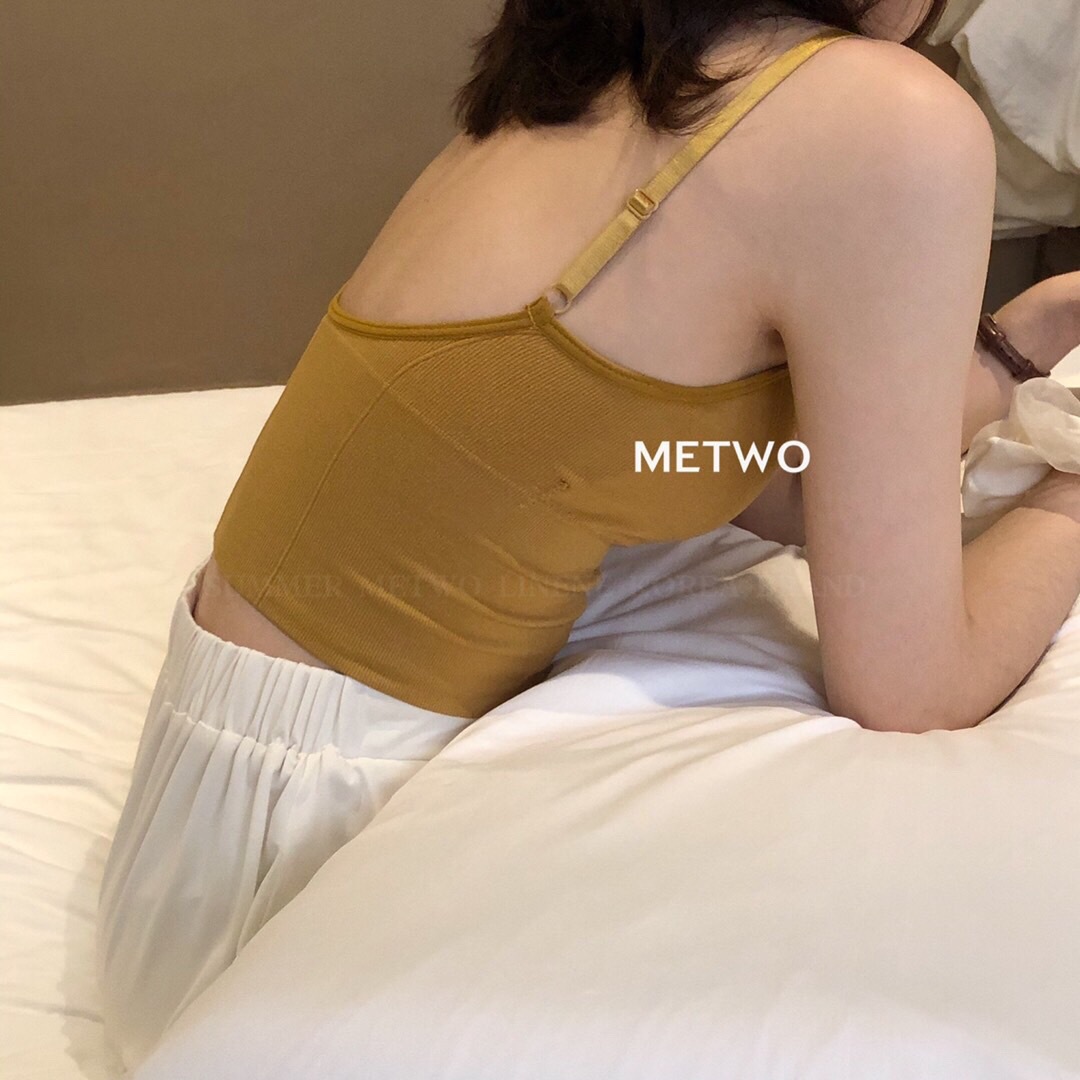 METWO 수제 6 색 라이트 컬러 롱 일본식 모든 매치 대형 U 캐미솔베이스 뷰티 백 래핑 가슴 속옷 여성용