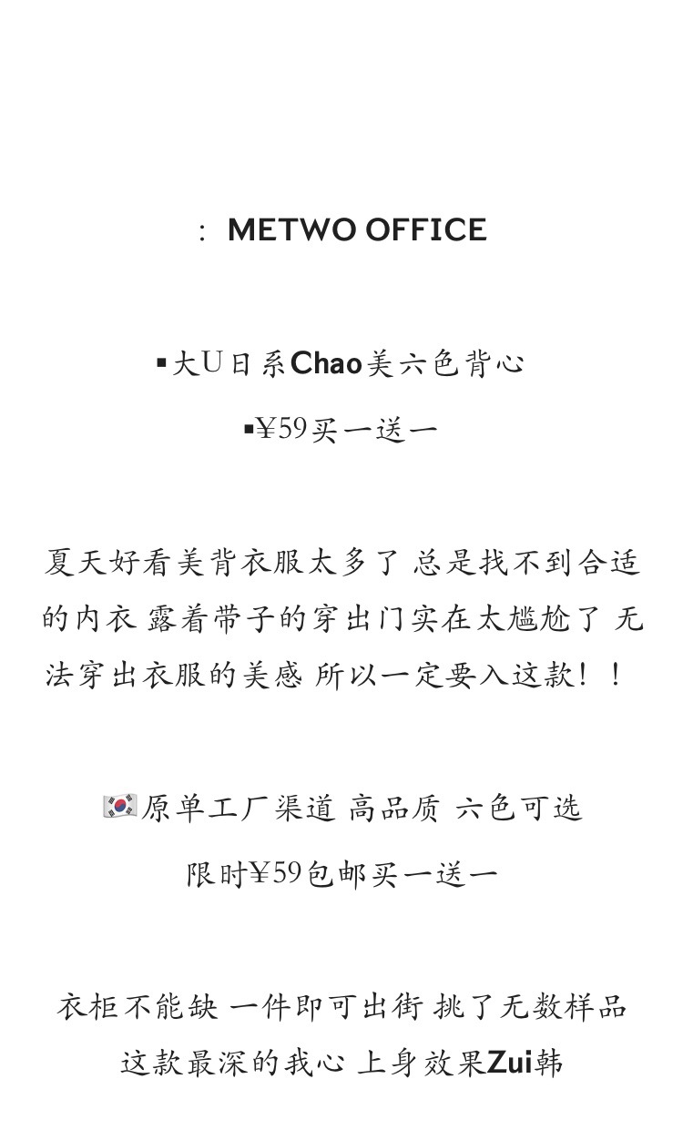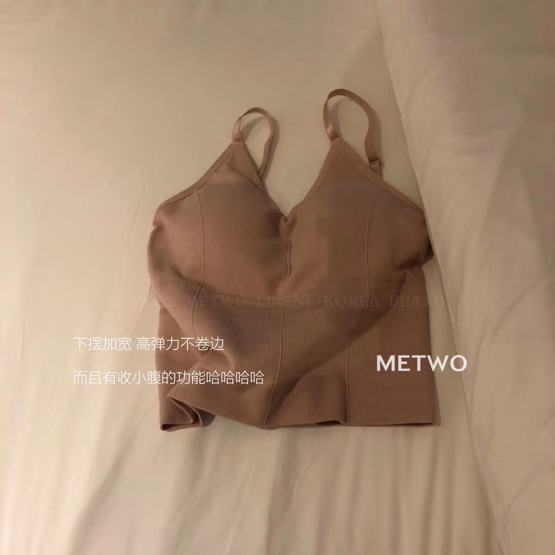 METWO 수제 6 색 라이트 컬러 롱 일본식 모든 매치 대형 U 캐미솔베이스 뷰티 백 래핑 가슴 속옷 여성용스토어 가기