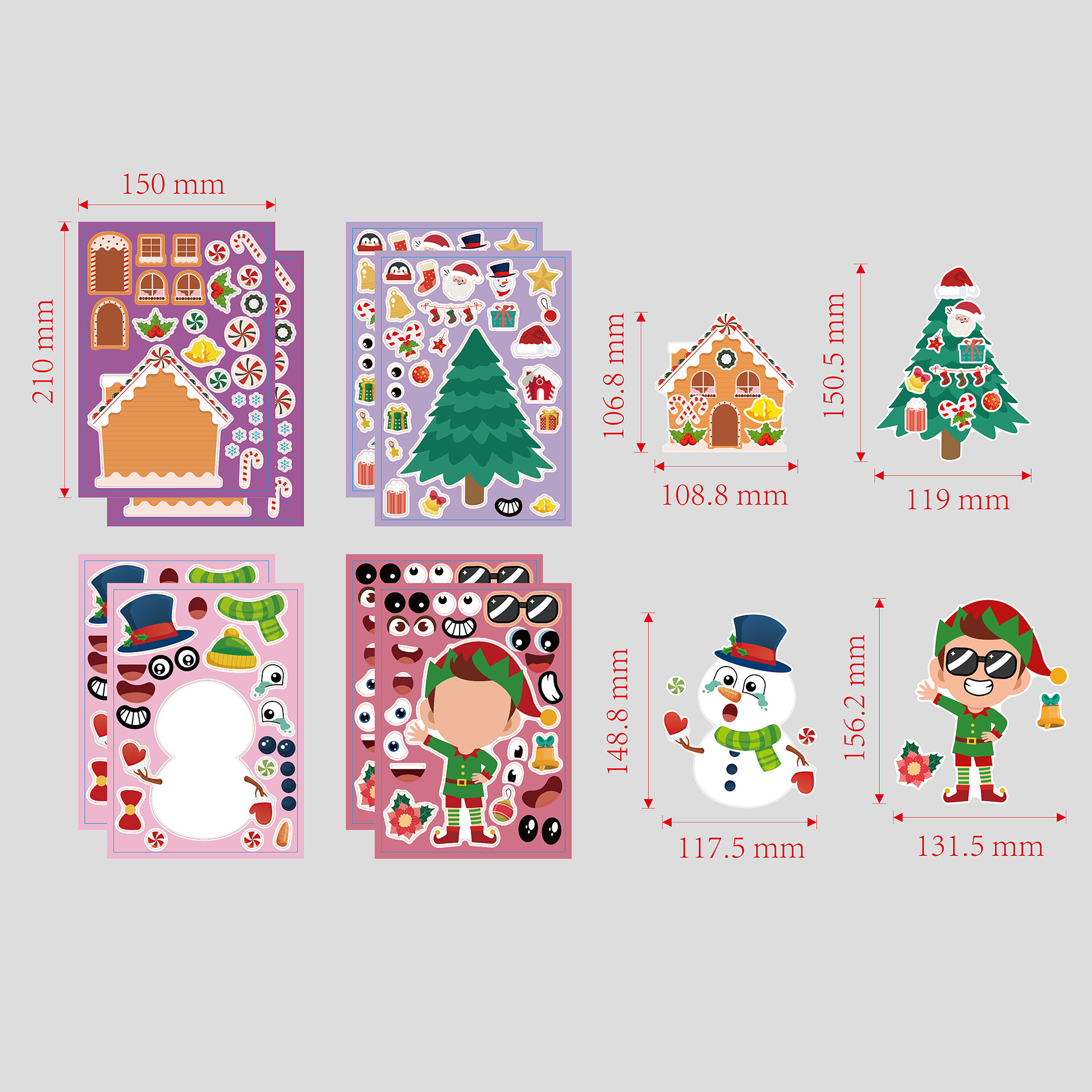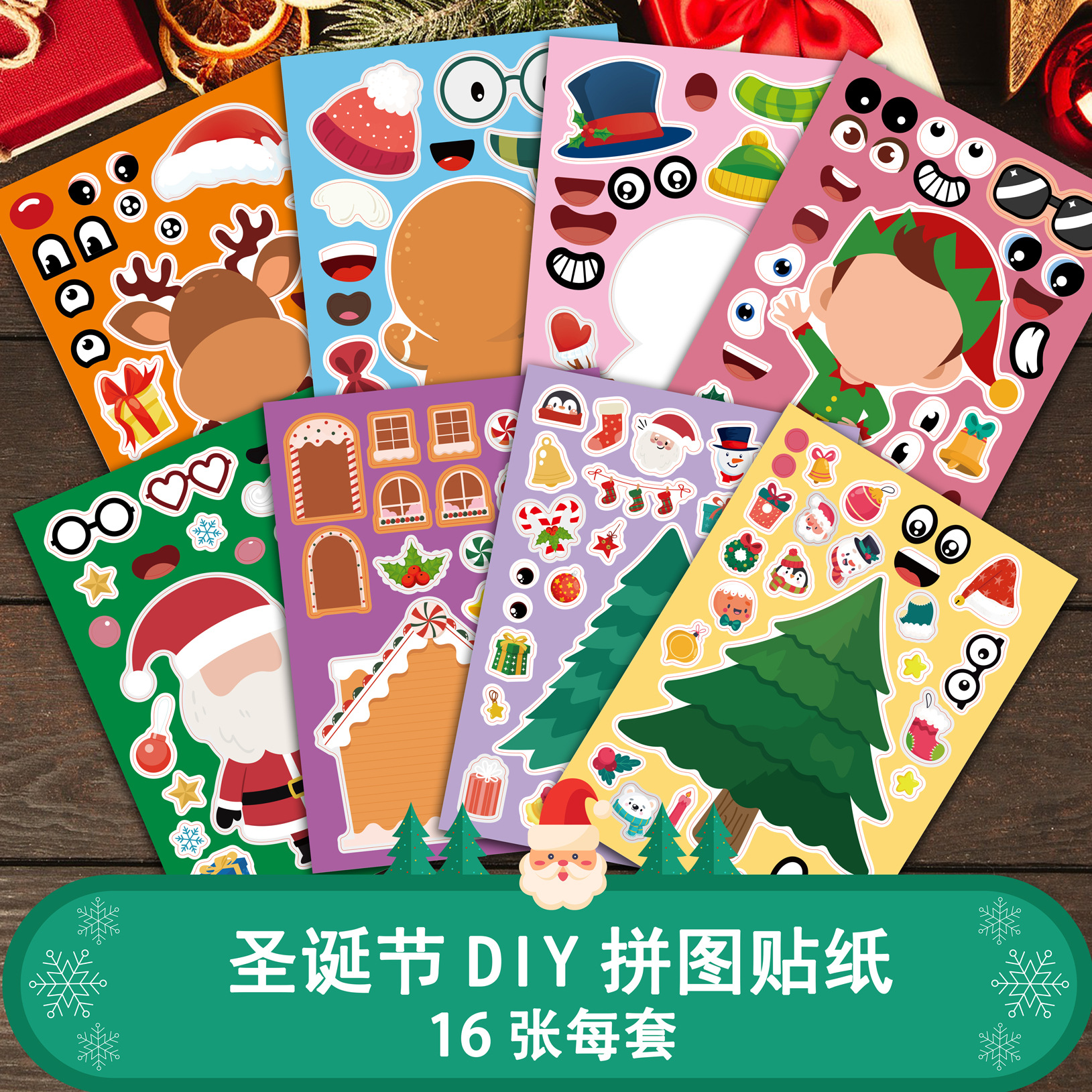 CM22012017 어린이 만화 귀여운 만화 크리스마스 부모-자식 대화 형 퍼즐 DIY 얼굴 스티커스토어 가기