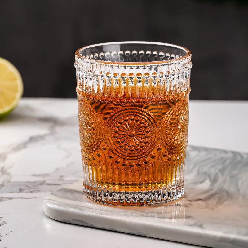북유럽 스타일 빈티지 해바라기 유리 프놈펜 릴리프 컵 사무실 가정용 유리 물 컵 음료 주스 컵