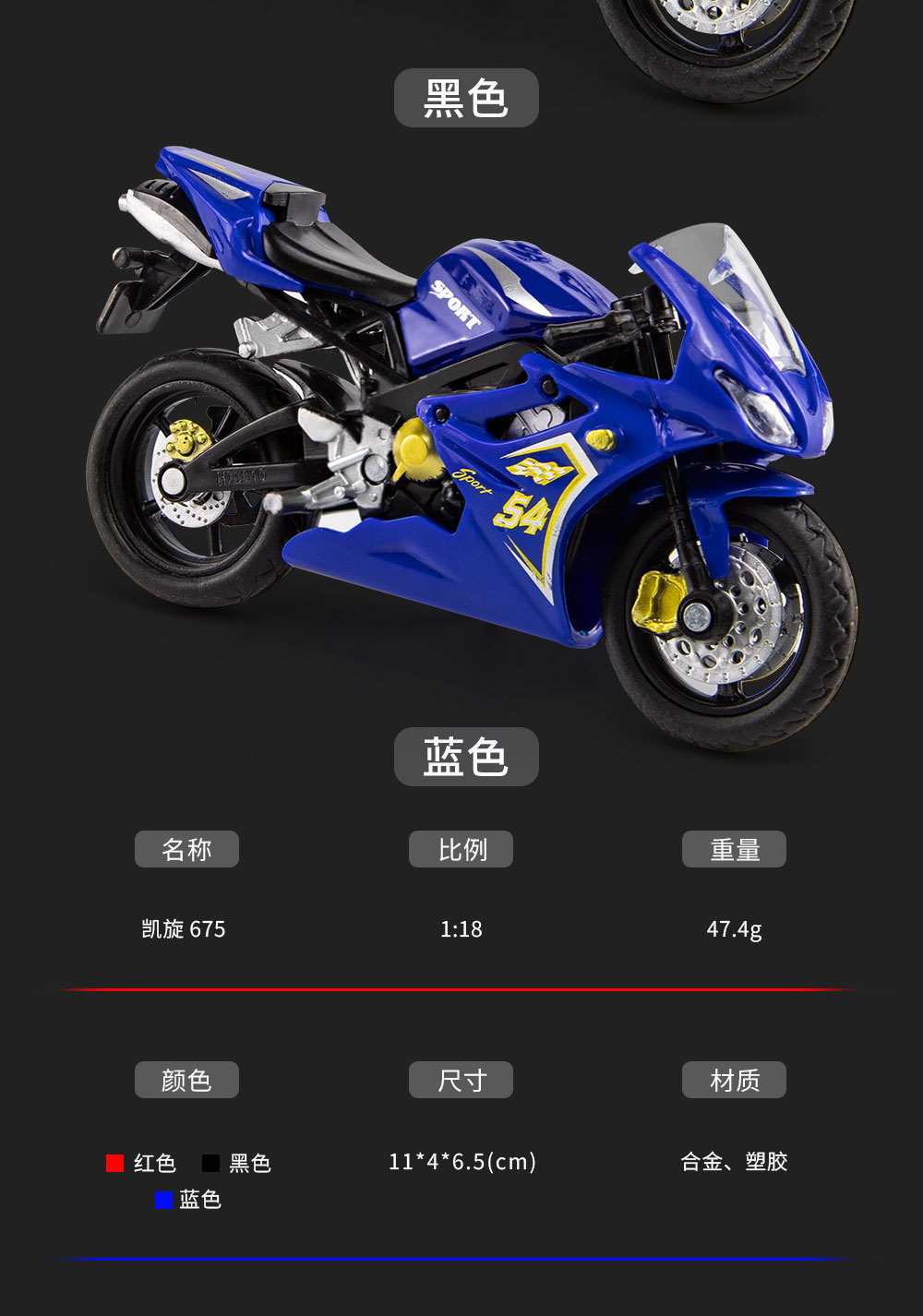 불가사리 HX810 박스형 Triumph 675 합금 1/18 시뮬레이션 어린이 슬라이딩 오토바이 모델 소년 도매