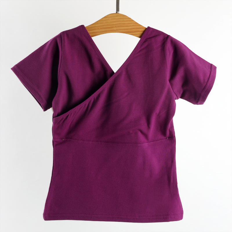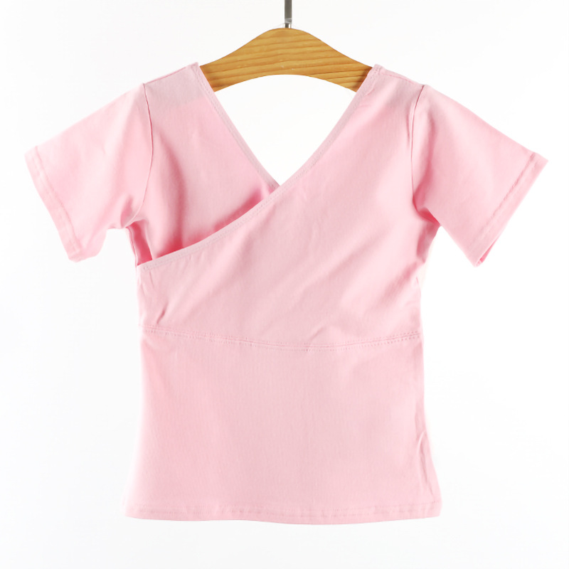 어린이 댄스복 반팔 크로스 오버 칼라 댄스 탑 연습복 봄과 가을 의류 라틴 댄스 소녀의 댄스 옷
