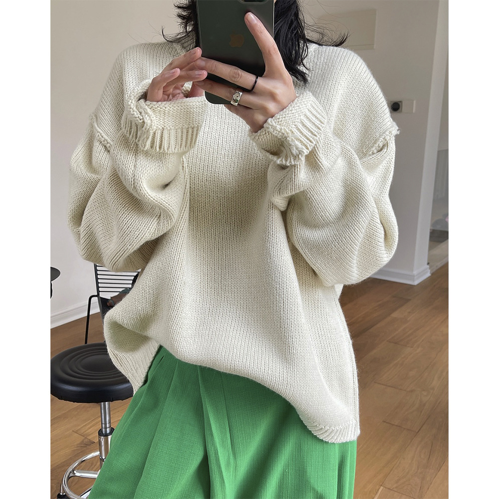 봄 새 한국어 버전 동대문 심플 아이슬란드 라인 라운드 넥 스웨터 느슨한 슬리밍 부드럽고 편안한 여성용 니트 탑