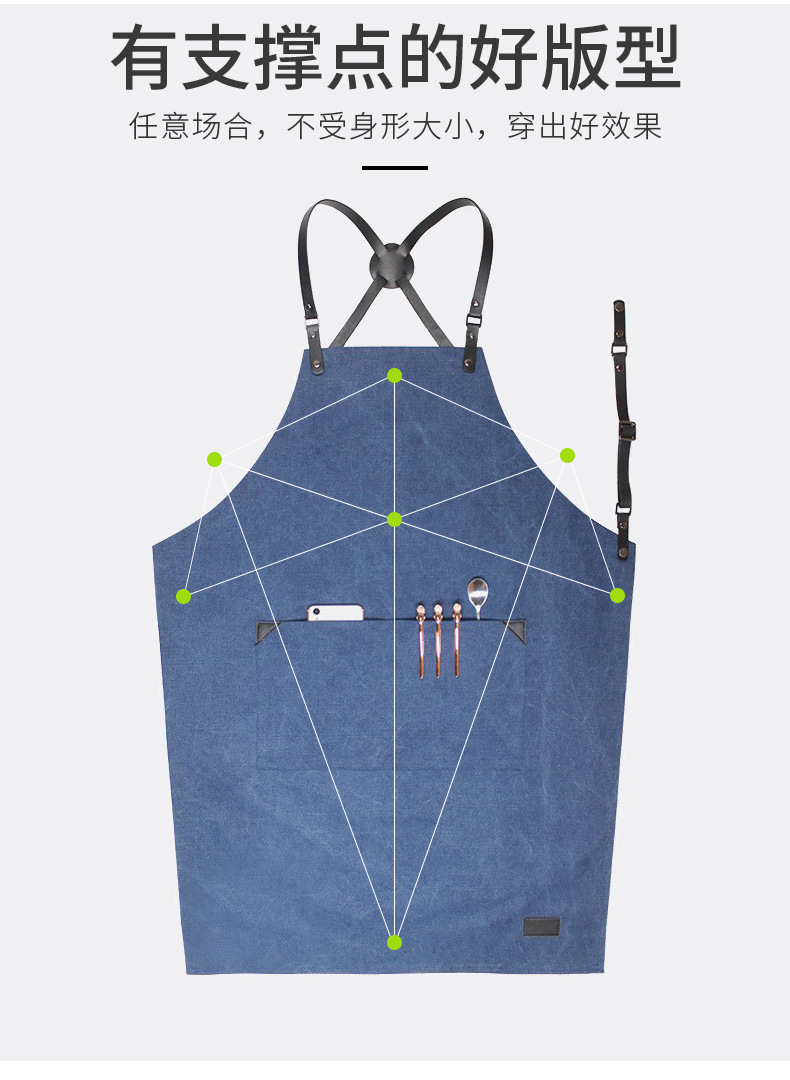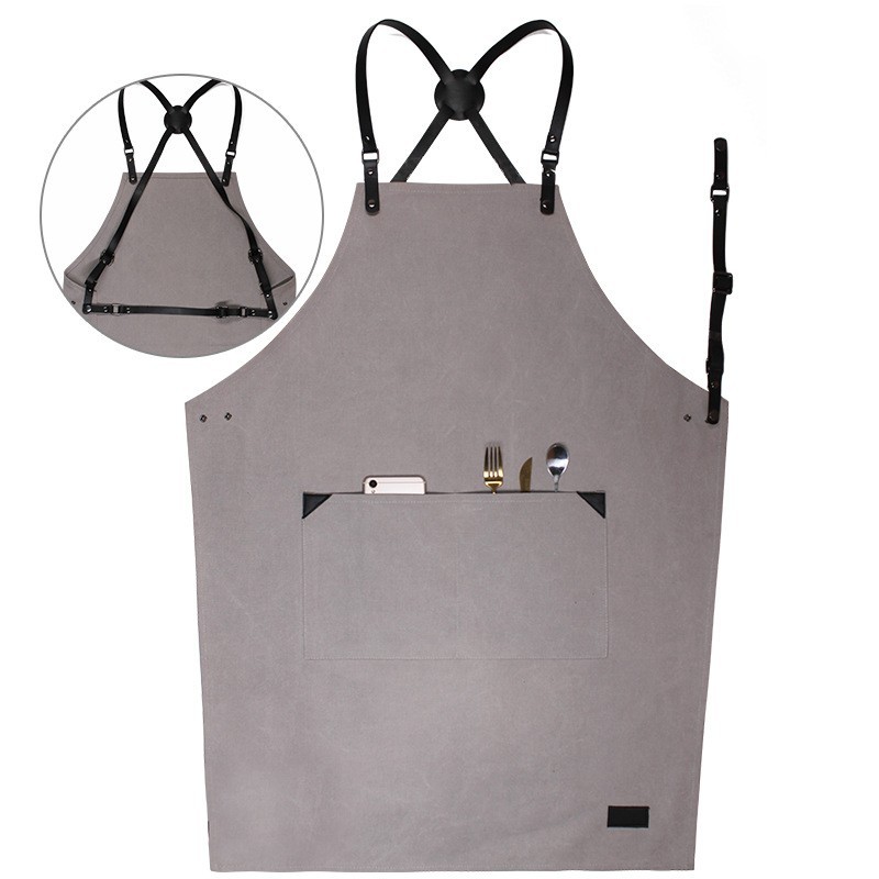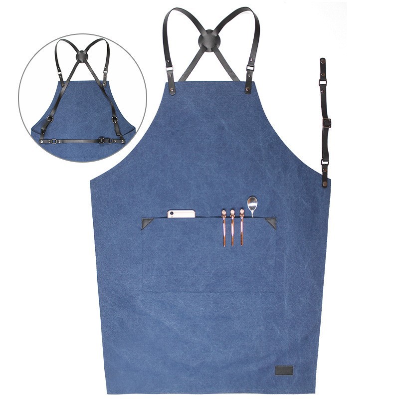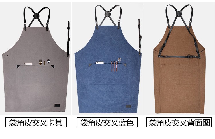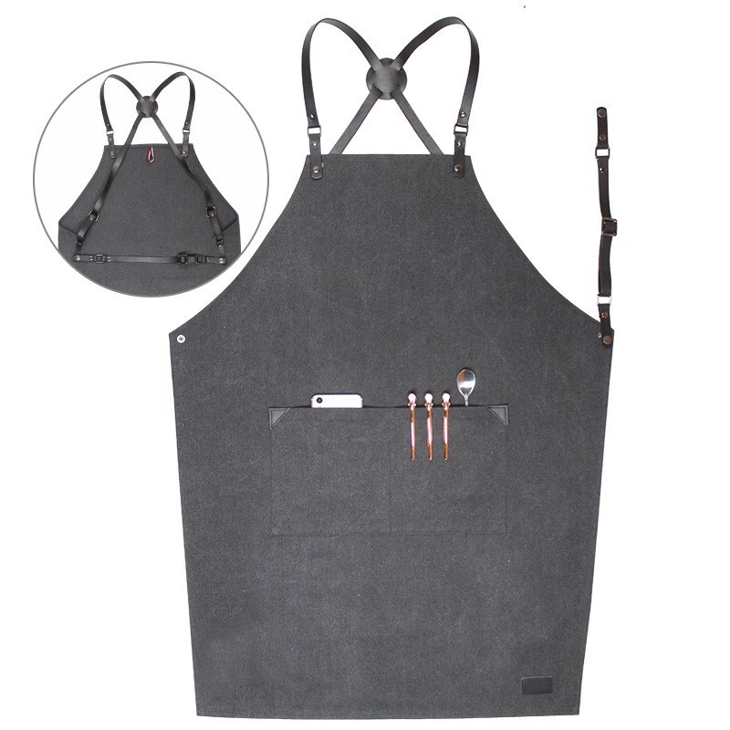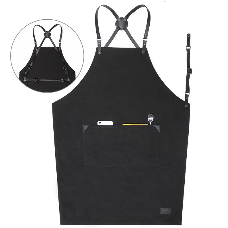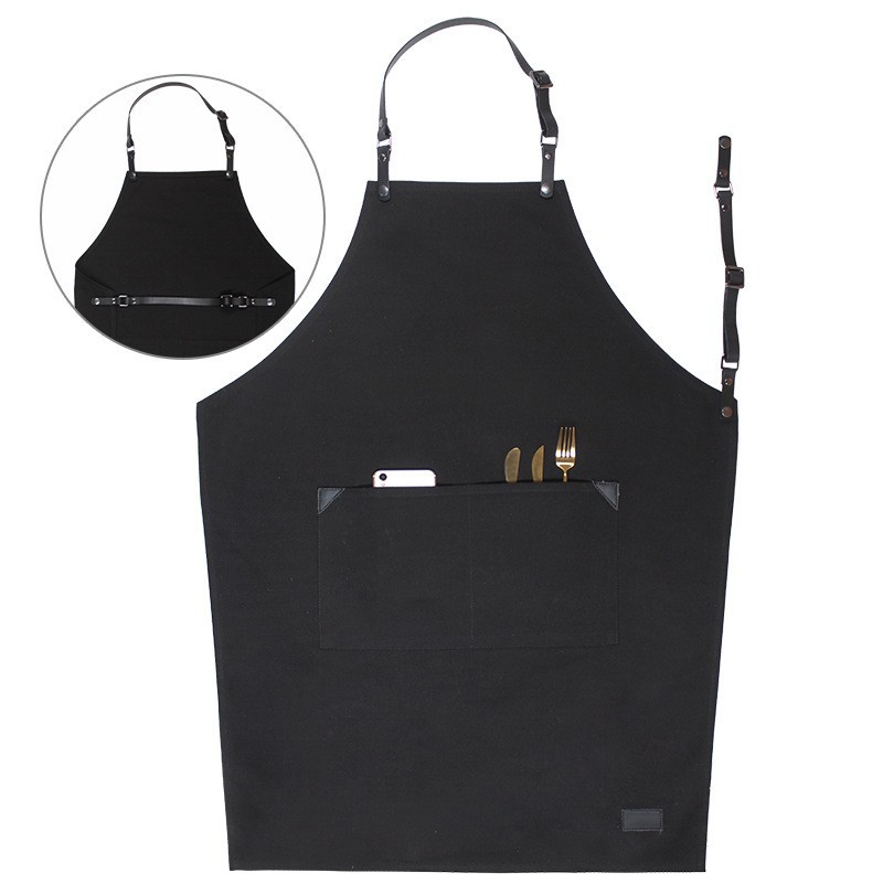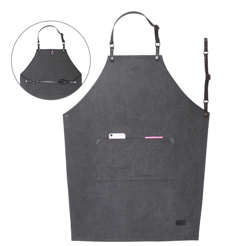 대외 무역 두꺼운 캔버스 앞치마 이발사 커피 숍 베이커 바지 PU 가죽 조절 스트랩 앞치마 도매스토어 가기