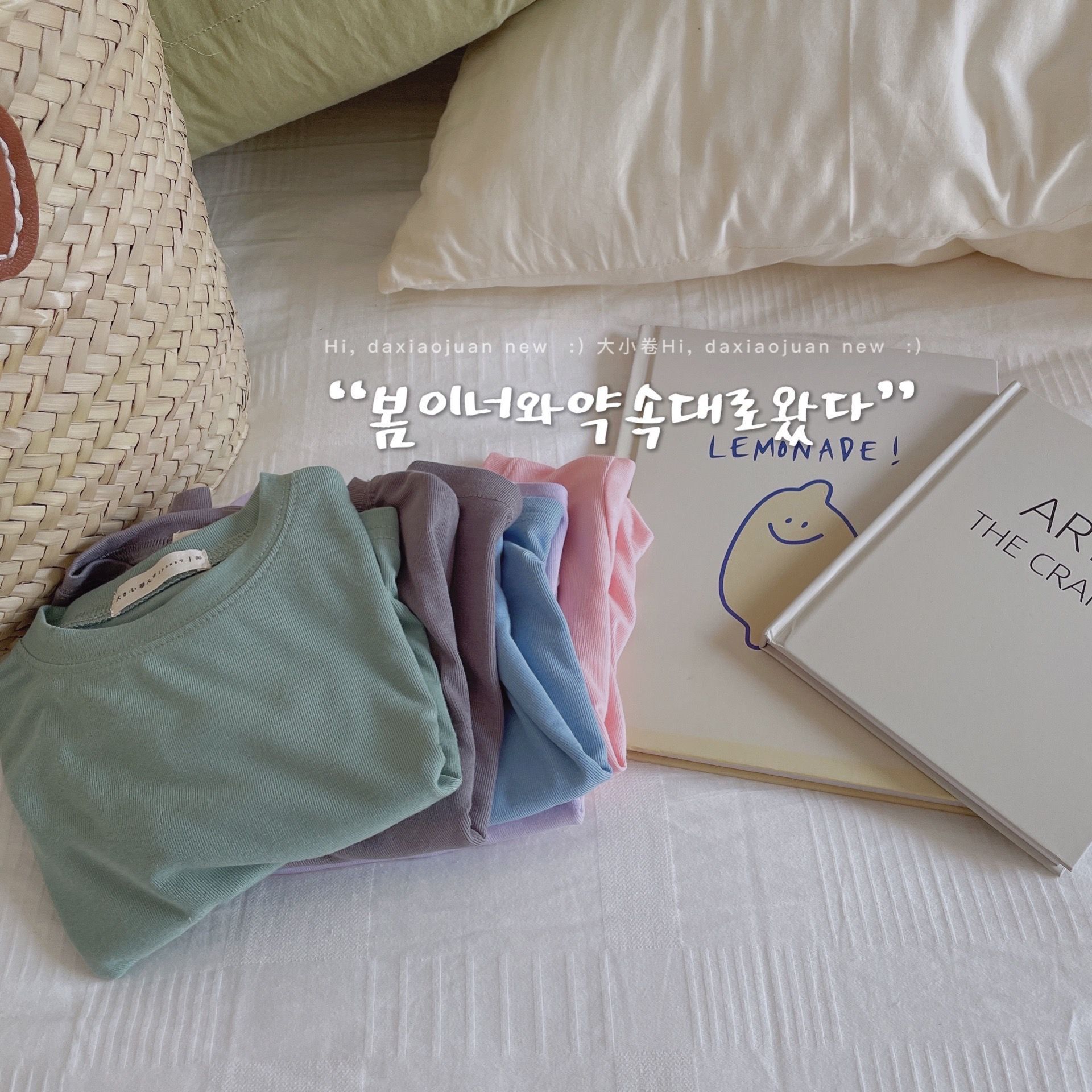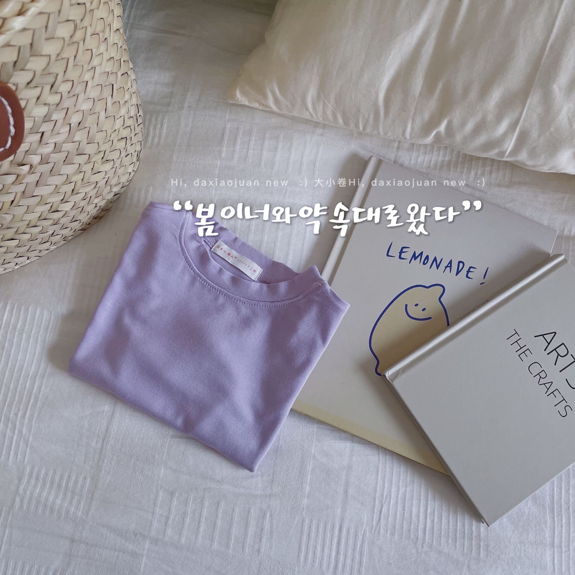 작고 작은 롤 여름 새로운 어린이 단색 반팔 얇은 마스크 티셔츠 남녀공용 아동복스토어 가기